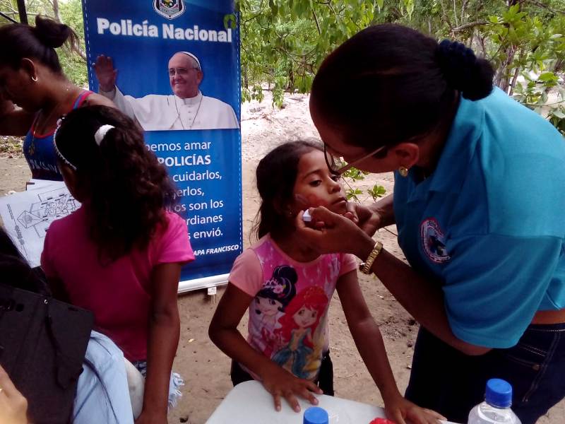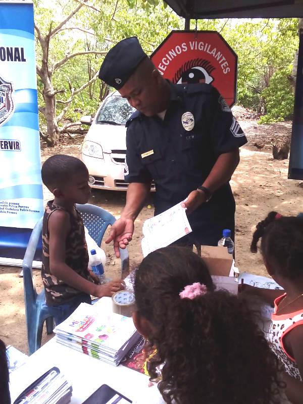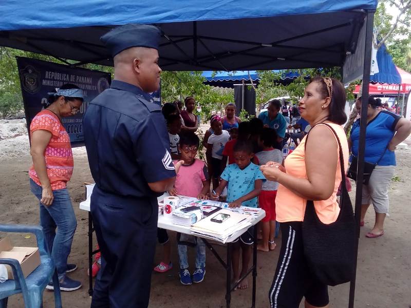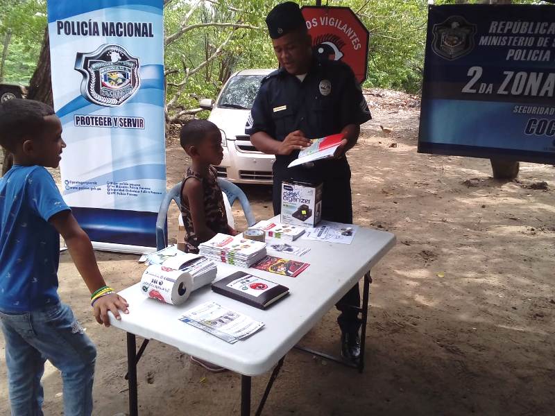 La Policía Nacional en Coclé, participó recientemente con un stand, en la Feria Familiar del Pescador en la comunidad de Farallón en el corregimiento de Rio Hato, distrito de Antón, lugar donde se dio una gran concurrencia de personas que disfrutaron de las diferentes actividades que se brindaron. Este encuentro de carácter familiar y cultural organizado por la Autoridad de los Recursos Acuáticos de Panamá (A.R.A.P.), contempló presentaciones y exhibiciones que deleitaron a el público que acompañó con la realización de programas artísticos, donde se dieron cita las distintas instituciones ofreciendo a los visitantes las mejores atracciones. El stand de la Policía Nacional a través de la oficina de Seguridad Ciudadana brindó a los participantes asesoramiento del ingreso a la Institución Policial, consejerías en prevención y seguridad, además los niños disfrutaron de Pinta Caritas y dinámicas de pintura. El sargento Algis Bethancourt detallaba que fue del agrado de todos los presentes la presentación de la Policía Nacional, donde se compartió con la comunidad y se les brindo a través de volanteo e interacciones recomendaciones de vigilancias y prevención ante hechos delictivos que se puedan suscitar. |