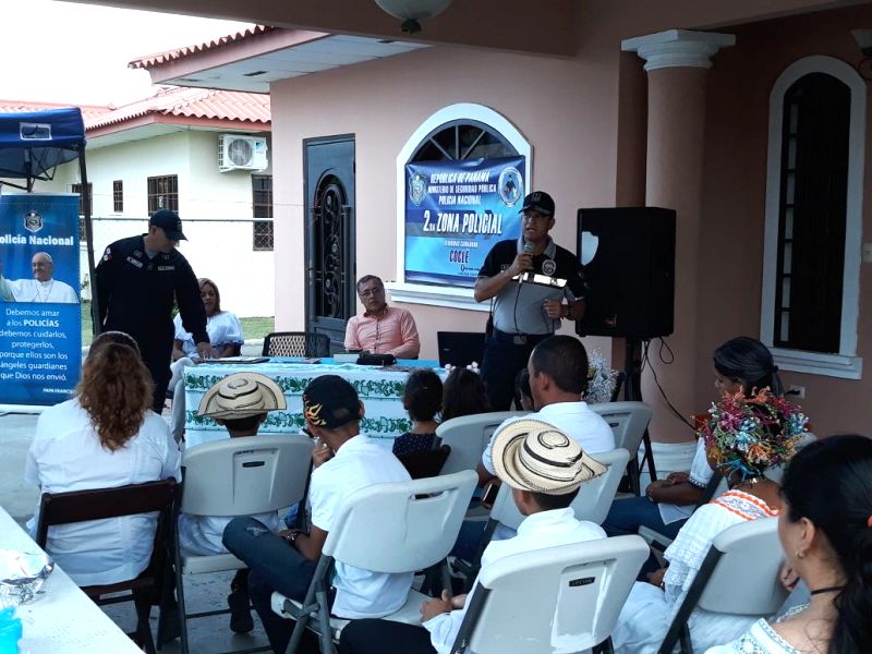 La Policía Nacional a través del Servicio de Seguridad Ciudadana de la Zona de Coclé, inauguró un nuevo programa de Vecinos Vigilantes en el distrito de Penonomé, precisamente en la Barriada Praderas de Monte Verde, donde se dieron cita más de 50 moradores de la comunidad. La doctora Yessenia Franco coordinadora del programa y quien dio la bienvenida a los presentes en la actividad, expresó su satisfacción por la implementación de tan importante proyecto de seguridad, que será de beneficio para la comunidad en un trabajo de estrecha relación con la Policía Nacional. Los niños Jhomar Enrique Moreno, Ana Gabriela Aguilar, Vivian Moreno, Lupita Romero, Adrián Rodríguez, deleitaron a los presentes con presentaciones típicas y de música instrumental. Por su parte, el comisionado Esteban Martínez, ejecutivo de la Zona Policial en Coclé, dejo saber que es buena la iniciativa de las comunidades, trabajar para velar por su propia seguridad y contar con el apoyo de la Policía Nacional. La actividad contó con la presencia del comisionado Esteban Martínez, ejecutivo de la Zona Policial de Coclé; el subteniente Eric Vásquez, sargento Roberto Morales, el licenciado Cesar Castillo, el pastor Néstor Torres, la licenciada Indira Valderrama, subcoordinadora del programa en la barriada e invitados que acompañaron a tan importante acto de inauguración. |