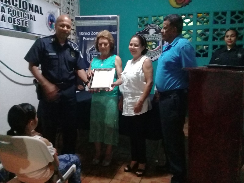 Unas 20 familias se beneficiaron con la inauguración del programa de seguridad ciudadana Vecinos Vigilantes No. 61, en la comunidad de calle del Agua final, corregimiento de Barrio Balboa en La Chorrera. En el evento se contó con la presencia del Comisionado Carlos Bethancourt Jefe de la Zona y oficiales de su equipo de trabajo quienes le entregaron la Carta Compromiso a la Sra. Ruth Cohen de Mata coordinadora principal del grupo. Por su parte, el Dr. Ramón Bósquez coordinador suplente dijo a miembros de la comunidad presente en el acto que es un fiel creyente del trabajo policial y que se debe cooperar con la autoridades para beneficio del bien común. La Sra. Mariela Weber miembro de los programas de vigilancia comunitaria le correspondió leer la promesa de Vecinos Vigilantes en representación de los presentes, comprometiéndose de manera voluntaria, organizada y transparente a trabajar en beneficio de la seguridad de la comunidad, |