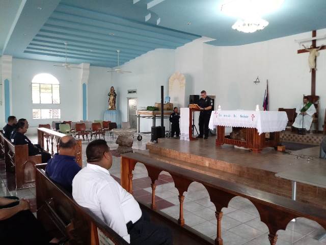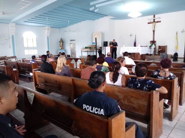 Hoy las unidades de servicio en la 15va. zona policial recordaron los 16 años de desaparición fisica del Sargento 1ro. Oscar De Gracia, por quien lleva el nombre el puesto policial de Mañanitas, reconociendo su sacrificio, honor y valentía al servicio de la Patria. Esta ceremonia se realizó el jueves 19 de julio, en la Iglesia la Ascensión del Señor, en el corregimiento de Mañanitas, con la participación del Comisionado Julio Jean Louis, Jefe del área de Juan Díaz, Mayor Samuel Acosta, Jefe del Área de Mañanitas, oficiales, unidades que laboran en la 15va zona, autoridades del corregimiento, familiares y amigos. De esta forma nuestras unidades rinden homenaje a un héroe anónimo, caído en el cumplimiento del deber de Proteger y Servir. |