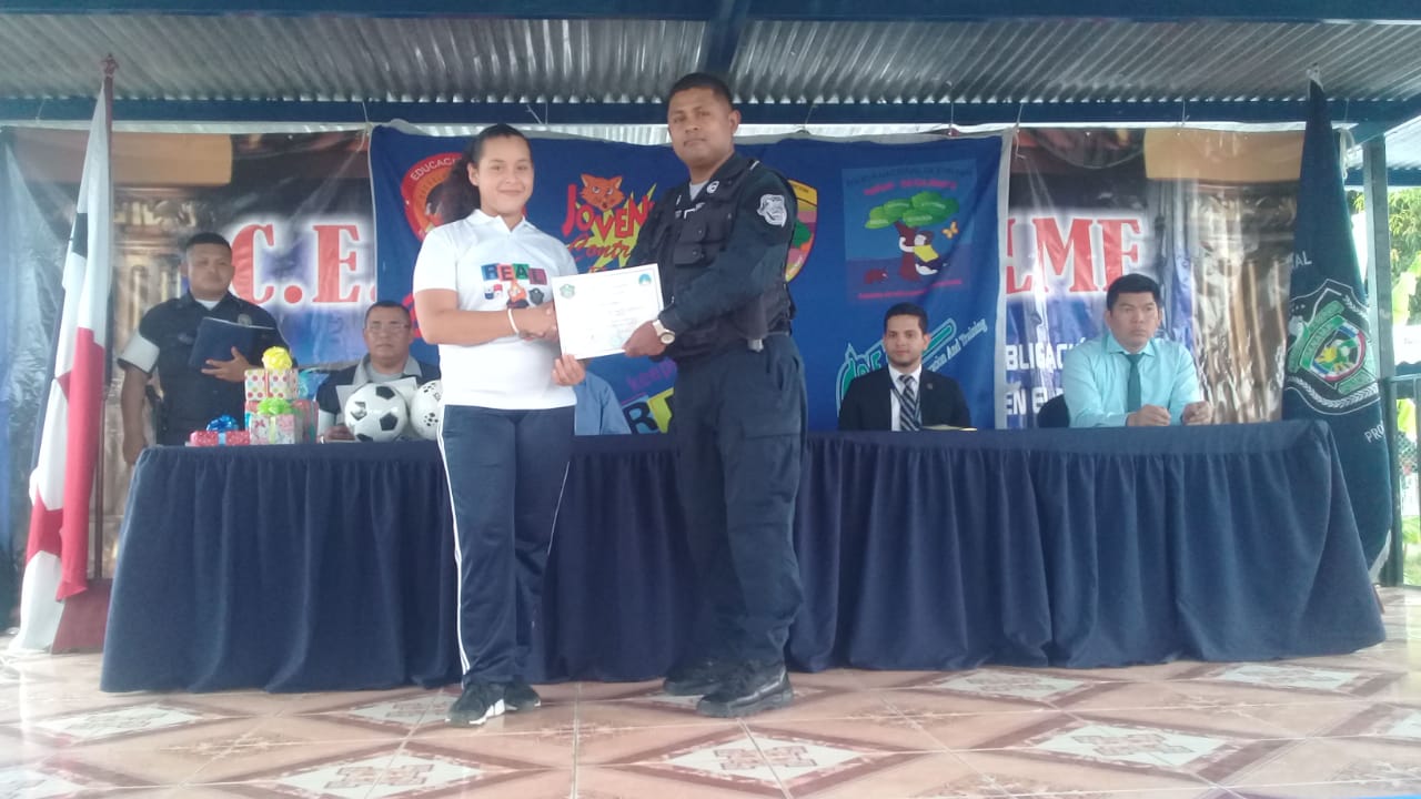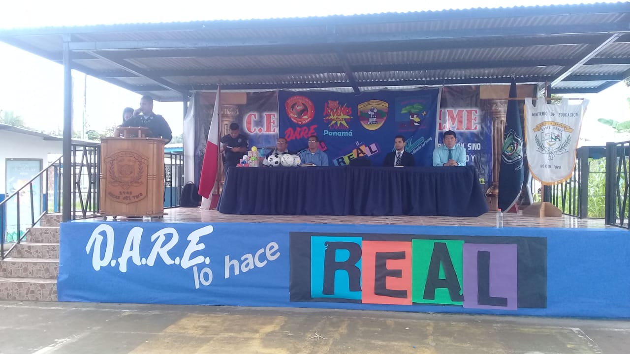 Estudiantes de 6to nivel del C.E.B.G del Empalme y Finca 61 recibieron certificados por haber culminado satisfactoriamente las lecciones en el programa Educación Entrenamiento Contra el Abuso de Drogas (D.A.R.E) que dirige la Policía de Niñez y Adolescencia. El acto de graduación se desarrolló en el Gimnasio del Plantel Educativo, con la presencia del Licenciado Julio Campines Fiscal de Menores de la provincia de Bocas del Toro, al igual que docentes. Además, se les obsequiaron medallas e implementos deportivos, a los estudiantes destacados por su excelente participación en el desarrollo de programa. |