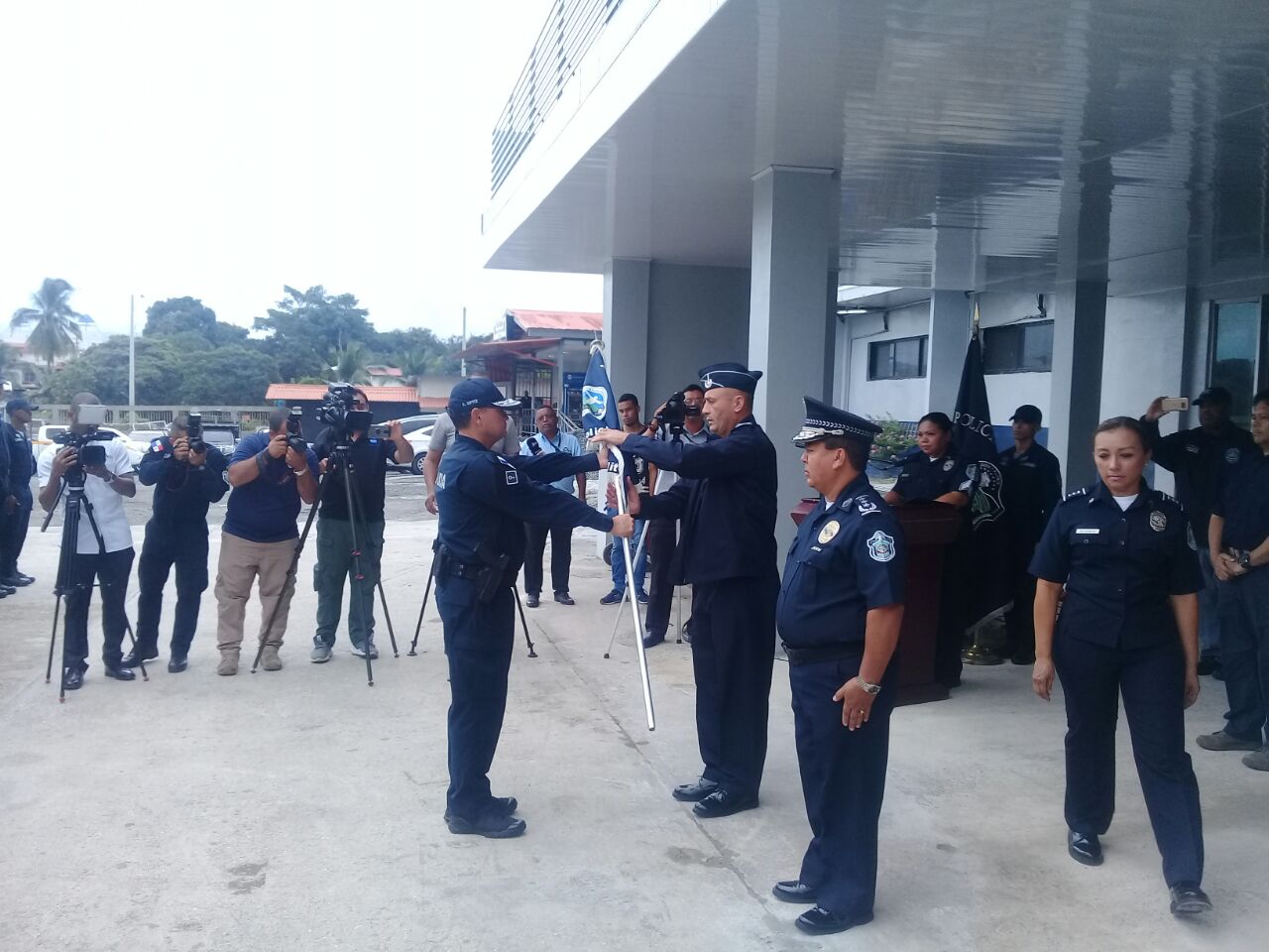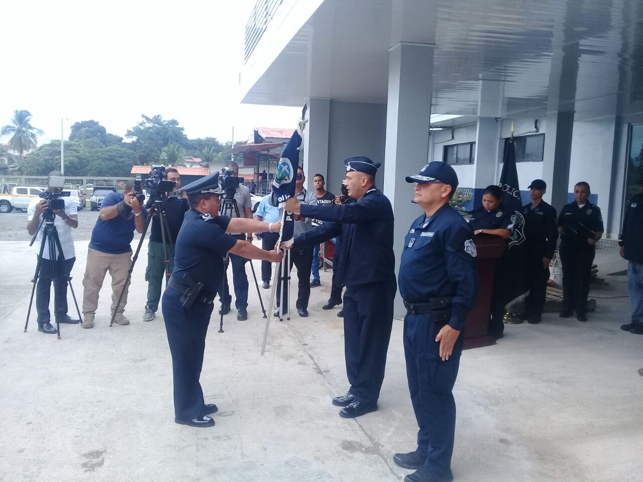 Comprometido en brindarle seguridad y bienestar a los residentes en el distrito de San Miguelito, este lunes 30 de julio asumió el cargo de jefe de zona de la 11va Zona Policial, el Comisionado José Flores, cargo que ocupaba el comisionado Carlos Ortiz. La ceremonia de cambio de mando se llevó a cabo en la sede de la subestación de Policía de Santa Marta este lunes 30 de julio, presidida por el Ministro de Seguridad Pública (MINSEG), Alexis Bethancourt, así como del Director General de la Policía Nacional Alonso Vega Pino y miembros del Directorio Policial. El Ministro de Seguridad Pública, Alexis Bethancourt explicó que este cambio de mando viene acompañado de varias acciones en beneficio de la ciudadanía, que incluyen un centro de cámaras de video vigilancia que integran más de 90 cámaras del municipio con cámaras de la Policía Nacional. Igualmente, el titular de MINSEG se refirió a la remodelación del Cuartel de Policía ubicado en Santa Marta, el cual tendrá salas de atención al público y oficinas para interponer las denuncias de manera directa en la Dirección de Investigación Judicial. “San Miguelito es una de las zonas que ha dado esa cuota de sacrificio, ha tenido un repunte y los indicadores numéricos reflejan el esfuerzo y el profesionalismo de los hombres y mujeres que conforman esta zona” aseguró Bethancourt. En tanto, el Director General de la Policía Nacional Alonso Vega Pino agradeció al jefe saliente su abnegada labor y exhortó al jefe entrante a desempeñarse de manera eficiente y abnegada. El nuevo jefe de la Zona Policía de San Miguelito, Comisionado José Flores se comprometió a seguir laborando de manera ardua e incansable con miras a cumplir con las metas establecidas para brindarle seguridad a la comunidad y comercios de este distrito. |