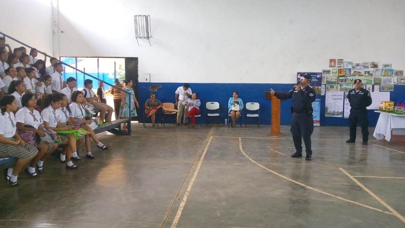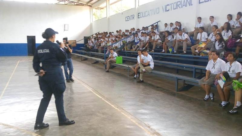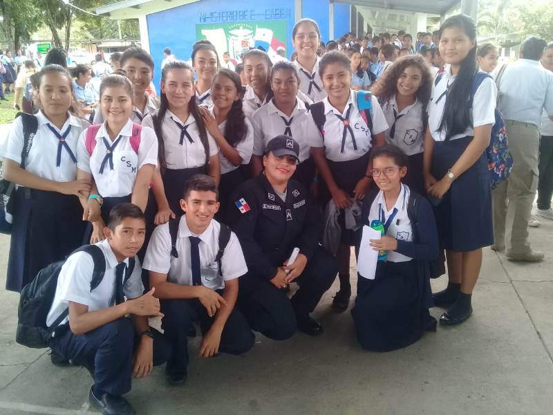 Con el objetivo de seguir estrechando lazos de amistad y confianza, en conjunto con la comunidad, las unidades del Servicio en Seguridad Ciudadana de la 4ta. Zona Policial de Chiriquí, realizaron diferentes actividades de carácter humanitario, preventivo y educativos. Los uniformados de Seguridad Ciudadana y del departamento de Reclutamiento y Selección en la provincia, efectuaron un volanteo en una feria de carreras universitarias, realizada para los graduados del colegio Victoriano Lorenzo, de las Lomas, distrito de David. Por otro lado, la Subteniente Itza Gaitán, quien funge como enlace del Servicio de Seguridad Ciudadana, brindó docencia a más de 23 niños y niñas de Pre- kinder y Kinder del parvulario "Madres, Maestras", ubicado en la comunidad de Volcán, distrito de Tierras Altas, con el tema de Seguridad Personal y en el Hogar. Mientras que, efectivos policiales asistieron a un convivio juvenil entre las instituciones del Estado, organizado por la Red Intersectorial de Políticas Públicas, participando más de 200 personas; entre estudiantes y padres de familia del colegio de Macano de Boquerón.