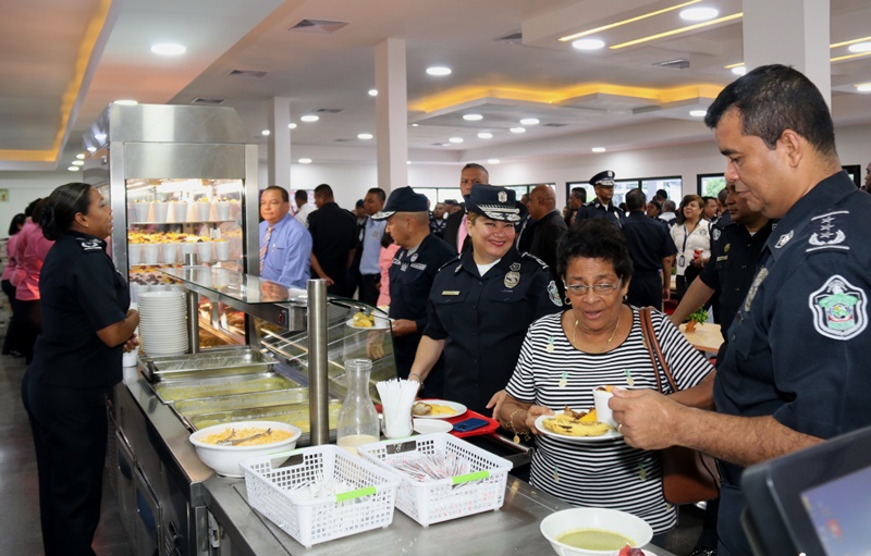 Desde este lunes 6 de agosto 2018, abrió sus puertas el nuevo comedor de la Policía Nacional, ubicado en la sede de esta institución en el corregimiento de Ancón. Le correspondió al Director General de la Policía Nacional, Alonso Vega Pino junto al Subdirector General, Jacinto Gómez y el ex director de la Institución, Omar Pinzón Marín, realizar el corte de cinta y la develación de la placa. El jefe policial mencionó que este proyecto es parte del plan de mejoramiento institucional que busca ofrecerles a los miembros juramentados y no juramentados las condiciones que garanticen su bienestar. Vega Pino también agradeció al ex director Pinzón Marín los aportes que iniciaron esta obra y que el recibió para darle continuidad hasta convertirse en una realidad. Las instalaciones de esta infraestructura fueron remodeladas con los equipos y mobiliario necesarios, para mayor comodidad de los comensales que degustarán menús variados con opciones saludables, atendidos por un personal capacitado en la buena atención y preparación de alimentos.
