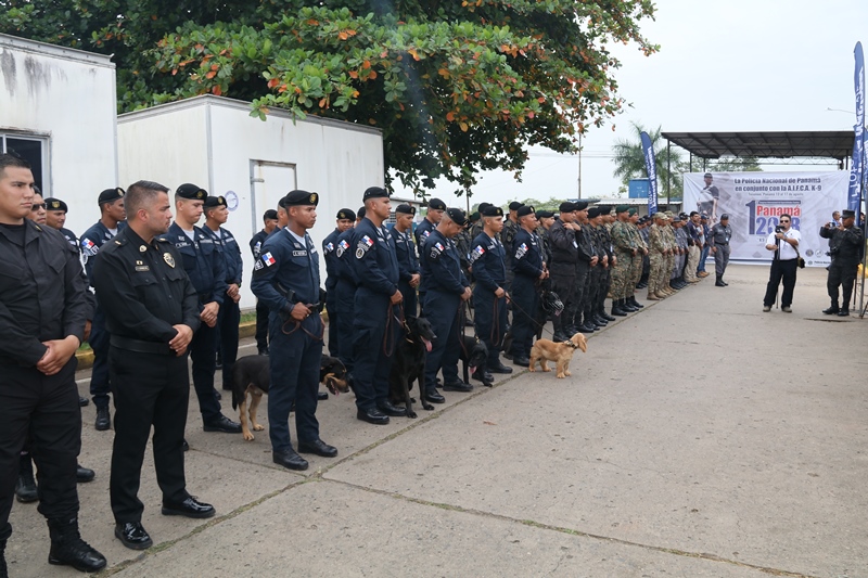 El Subdirector General de la Policía Nacional, Jacinto Gómez dio la bienvenida a representantes de cinco países, quienes participan en el Primer Congreso Internacional de Especialidades Caninas Panamá 2018, llevado a cabo en la Unidad Canina, ubicado en el corregimiento de Tocumen. “La unidad canina es el mejor aliado de las instituciones de seguridad, durante muchos años los perros han sido uno de los factores importantes en la detención de drogas, principalmente en nuestro país y sé que este congreso va a ser de mucho beneficio para Panamá” destacó el Subdirector. Se trata de un evento que cuenta con la participación de representantes de México: la Asociación Internacional de Formación y Capacitación de Adiestradores de Perros (AIFCA-K9), Policía Municipal de HUNUCMA; la Policía Seguridad Aeroportuaria de Argentina, el Centro Regional de Adiestramiento Canino de la Policía de Ecuador, la Benemérita Cruz Roja K-Zar de Costa Rica y la Unidad Canina del Organismo de Investigación Judicial. Por su parte el Jefe de la Unidad Canina de la Policía Nacional, Mayor Mario Chan Durán destacó la importancia de este congreso, que busca aproximar técnicas, estratégicas, planes y metodologías de la región Latinoamericana en el uso de perros auxiliares de policías y también para servicios humanitarios. En esta actividad donde los canes realizarán demostraciones con sus instructores, se estarán poniendo en práctica habilidades y destrezas como: detención de sustancias ilícitas, intervención, patrullaje y protección, búsqueda y rescate, terapia asistida, primeros auxilios caninos y bienestar animal. A la inauguración asistieron representantes de los estamentos de seguridad del estado como: Servicio Nacional de Fronteras,( SENAFRONT) Servicio Nacional Aeronaval (SENAN) y el Servicio de Protección Institucional (SPI), representantes de la Fundación Colitas, Ministerio de Desarrollo Agropecuario e invitados especiales.