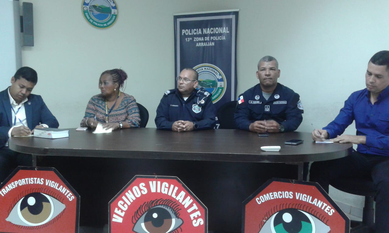 “El acercamiento con la comunidad es clave para llevar nuestro mensaje preventivo y ustedes los líderes comunitarios son un pilar importante en esta labor”, dijo el Subdirector General de la Policía Nacional, Jacinto Gómez durante una reunión con líderes comunitarios del distrito de Arraiján, con miras a coordinar acciones conjuntas en pro de la comunidad. En esta reunión que se realizó en el Salón de Conferencias de la sede de la Zona Policial de Arraiján, el Subdirector General de la institución policial atendió las inquietudes de los participantes y agradeció a los presentes toda la confianza y apoyo depositado en las unidades que a diario brindan seguridad en sus áreas de responsabilidad. En tanto, el Jefe de la Zona Policial de Arraiján, Gustavo Cogley agradeció a los líderes comunitarios y a las autoridades locales por siempre aportar su granito de arena en la ardua tarea que desempeña la Policía Nacional de brindar seguridad. Por su parte, Alexis González, presidente distrital del Programa Vecinos Vigilantes manifestó que estos conversatorios son positivos debido a que permiten el intercambio de ideas y obtener información puntual en materia de prevención que son transmitidas a sus comunidades. En esta reunión también estaba la señora Esther Rodríguez, líder comunitaria de la barriada 2,000 en Burunga, quien destacó los beneficios de pertenecer a estos programas, sobre todo la seguridad que brinda la primera institución de seguridad. También estuvieron presentes funcionarios de Obras y Proyectos del Municipio de Arraiján; el Fiscal Adjunto de la Provincia de Panamá Oeste, Eduardo Barragán, en representación del Ministerio Público; Nida Valdés, del Instituto Nacional de la Mujer (INAMU) y Erick Segura, de la Gobernación de Panamá Oeste. |