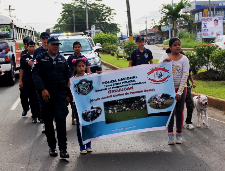 Unidades de la Policía Nacional de servicio en la Policía de Niñez y Adolescencia de la 10ma. Zona Policial, participa en la caminata en Pro de la Juventud Organizada por la Escuela Victoria Spinay, del distrito de La Chorrera la cual partió del Municipio hasta las instalaciones del colegio, recorriendo la vía principal panamericana. Dicho evento contó con la participación del Alcalde del distrito de La Chorrera, el Señor Tomas Velásquez, la Teniente Graciela Moreno de Niñez y Adolescencia y en representación del Servicio de Seguridad ciudadana los jóvenes integrantes del grupo Juvenil Canino de la zona. Actividades como estas buscan resaltar la participación de los jóvenes como parte importante de nuestra sociedad, alejándolos de la delincuencia, el alcohol y las drogas. |