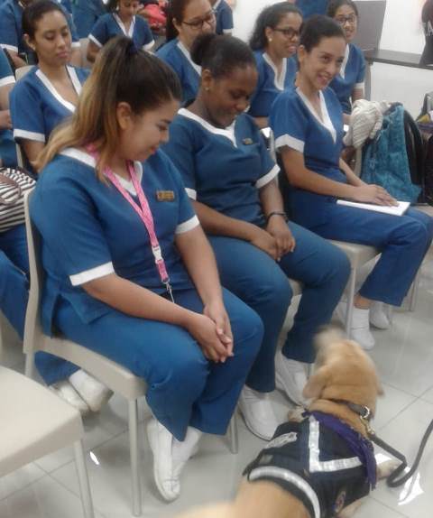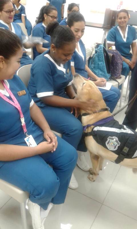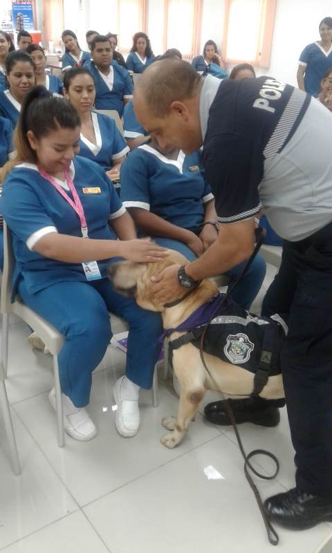 Un total de 40 estudiantes de 3er. y 4to. año de la Licenciatura en Fisioterapia de la Universidad de las Américas ”UDELAS” de la provincia de Chiriquí, recibieron una capacitación sobre “Terapia Asistida con Perros (TAP), dictada por miembros de la Unidad Canina (UCAN) de la Policía Nacional. Correspondió al Mayor Mario Chan, jefe de la UCAN, exponer los beneficios psicomotores y emocionales a niños con discapacidades, que brindan perros entrenados. Luego de varias sesiones de terapias y acercamientos de canes con los niños se logra ver un cambia de condiciones, habilidades, capacidad sicomotoras, en fin una recuperación general. Actualmente, la Policía Nacional mantiene 175 manejadores caninos, seleccionados y entrenados, quienes actúan junto a un equipo interdisciplinario en cada asistencia. Este equipo debe fijar objetivos, guiar la interacción del paciente con el animal, evaluar el proceso y sus resultados. Los padres de familias de los niños con limitaciones especiales, agradecen a la Policía Nacional y en especial a las unidades caninas de la provincia, por realizar estos tipos de terapia, ya que son de gran ayuda en el entorno familiar. |