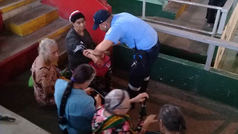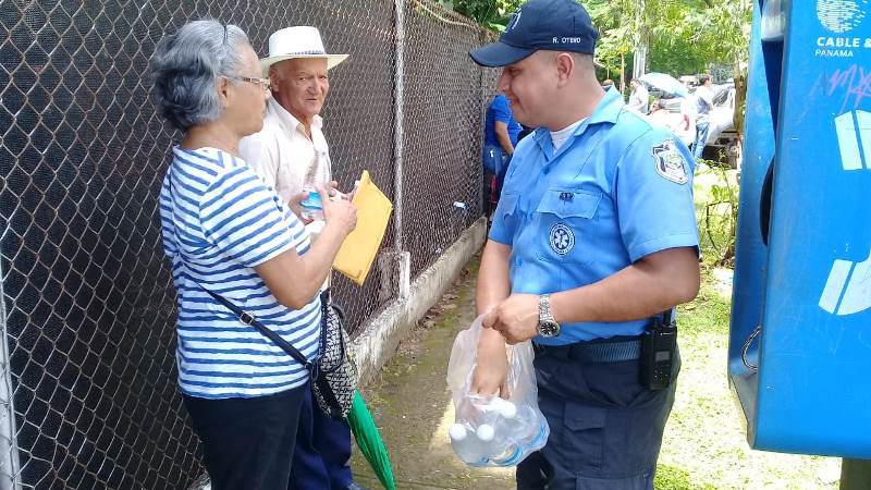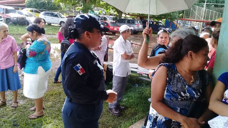 La 4ta. Zona policial de Chiriquí, a través de la Sección de Servicios Médicos, viene efectuando tomas de presión arterial, asistencia médica y consejos de salud, en la casa de gobierno de la provincia de Chiriquí y en el Gimnasio del Club de Leones “La Basita”, durante la entrega de los Certificados de Pago Negociable de la Segunda Partida del Décimo Tercer Mes “CEPADEM”, en su mayoría a adultos mayores. Durante esta jornada se brinda seguridad policial dentro y fuera de dichas instalaciones, a la vez que se entregan panfletos con recomendaciones para evitar que sean víctimas de robos, hurtos, estafas o cualquier otro delito. La Policía Nacional recomienda a las personas que realizan transacciones bancarias que siempre estén acompañadas por un familiar por su seguridad. |