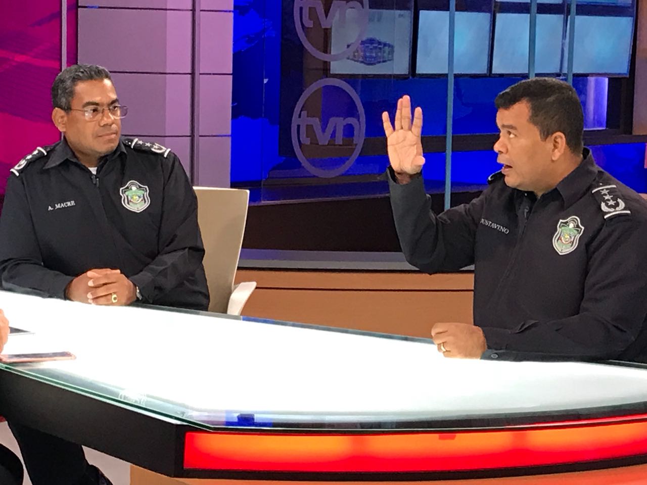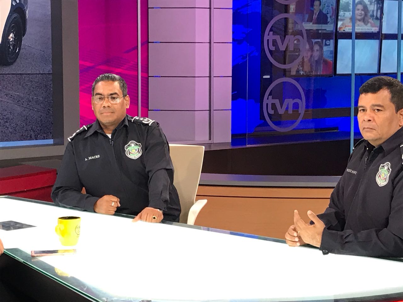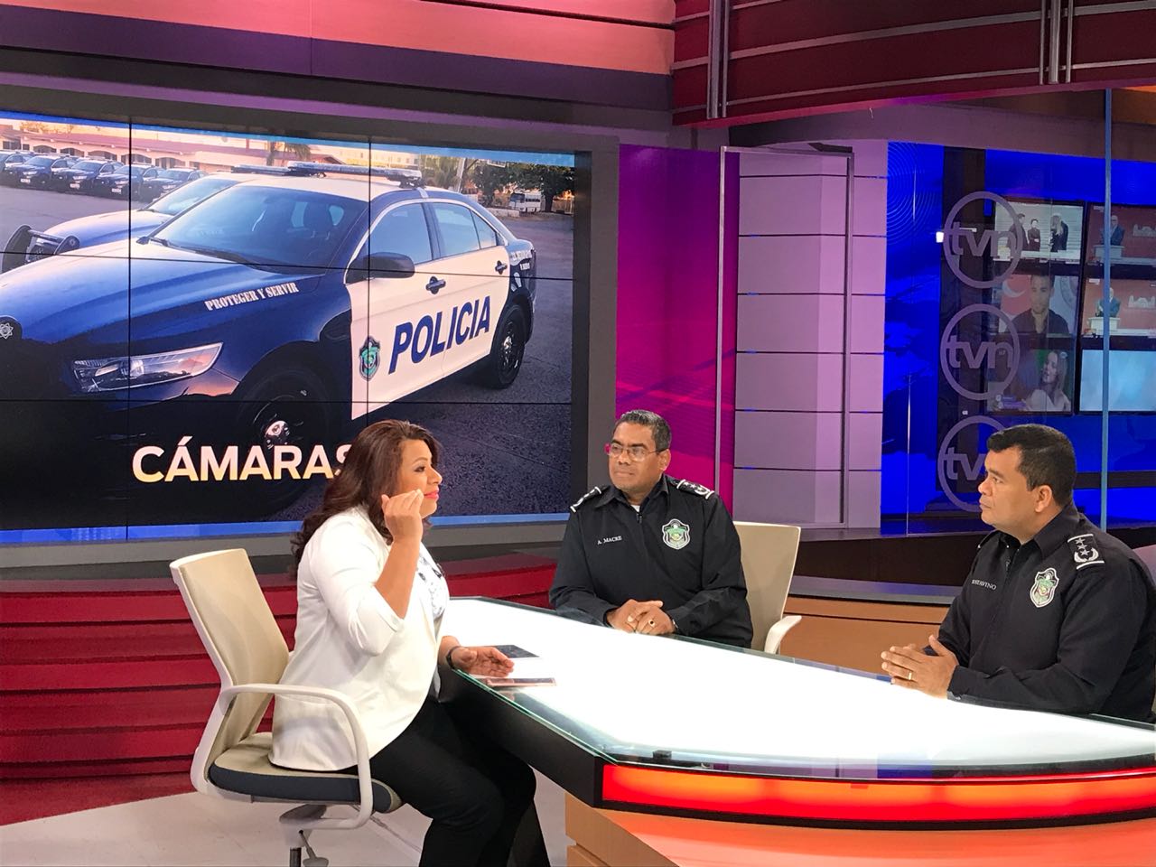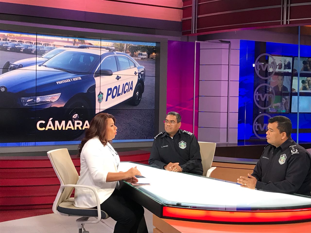 Los Comisionados Porfirio Justavino y Aldo Macre, asistieron a Tvn Noticias, donde explicaron a la periodista Castalia Pascual sobre la implementación y funcionamiento de las cámaras de vídeo en los vehículos policiales, como parte de las estrategias para seguir brindando seguridad a la ciudadanía. Sostuvo Macre que la estrategia consta de cinco líneas de acción; siendo la línea relacionada a las instituciones eficaces, transparentes y de respuesta inmediata, una de las más importantes. Además que se implementarán cámaras de vigilancia en los vehículos patrullas, para que sean un elemento testigo, cuando se den situaciones donde las personas graban, editan y no publican el hecho como realmente sucedió. Por su parte el Comisionado Porfirio Justavino indicó que las cámaras serán monitoreadas desde el centro de operaciones. Las personas encargadas de monitorear pueden recibir llamadas y ven en su pantalla la posición satelital de cada patrulla, además de contar con el dispositivo que inicia el video dentro de los vehículos. Esta nueva adquisición tecnológica será instalada en primera instancia en patrullas y unidades del tránsito.