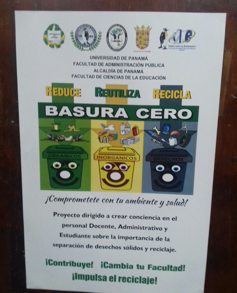 Los cadetes de tercer año de la Escuela de Oficiales de Policía “Doctor Justo Arosemena, participaron este jueves en el proyecto Ecológico de la Universidad de Panamá reciclando con el lema “Basura Cero”, como parte de su labor social, requisito indispensable dentro de su proceso de formación y de ayuda a la comunidad. Los futuros Oficiales de Policía, fueron recibidos por los profesores y alumnos de la Facultad de Administración Pública quienes les explicaron el proyecto que consiste en seleccionar los desechos sólidos de los orgánicos con los inorgánicos, y de esta manera sacarle provecho a la basura que nadie quiere. Dentro de la formación policial es deber del futuro oficial involucrarse con la comunidad en las actividades básicas como es la sana convivencia, el apoyo y desarrollo de actividades recreativas y deportivas en un ambiente sano. La profesora Carmen Lassen, coordinadora del proyecto Basura Cero, señaló que bajo el enfoque de Basura Cero y la aplicación de este concepto en el manejo de los desechos, se busca reducir la producción de residuos, reciclar y revalorizar la mayor cantidad posible de materiales, así como promover la importación o fabricación de productos que estén diseñados para ser rehusados en el largo plazo. Este proyecto se está promoviendo en el distrito capital desde hace tres años y es impulsado a través de ferias de reciclaje y campañas masivas de educación en escuelas y universidades, así como en medios de comunicación.