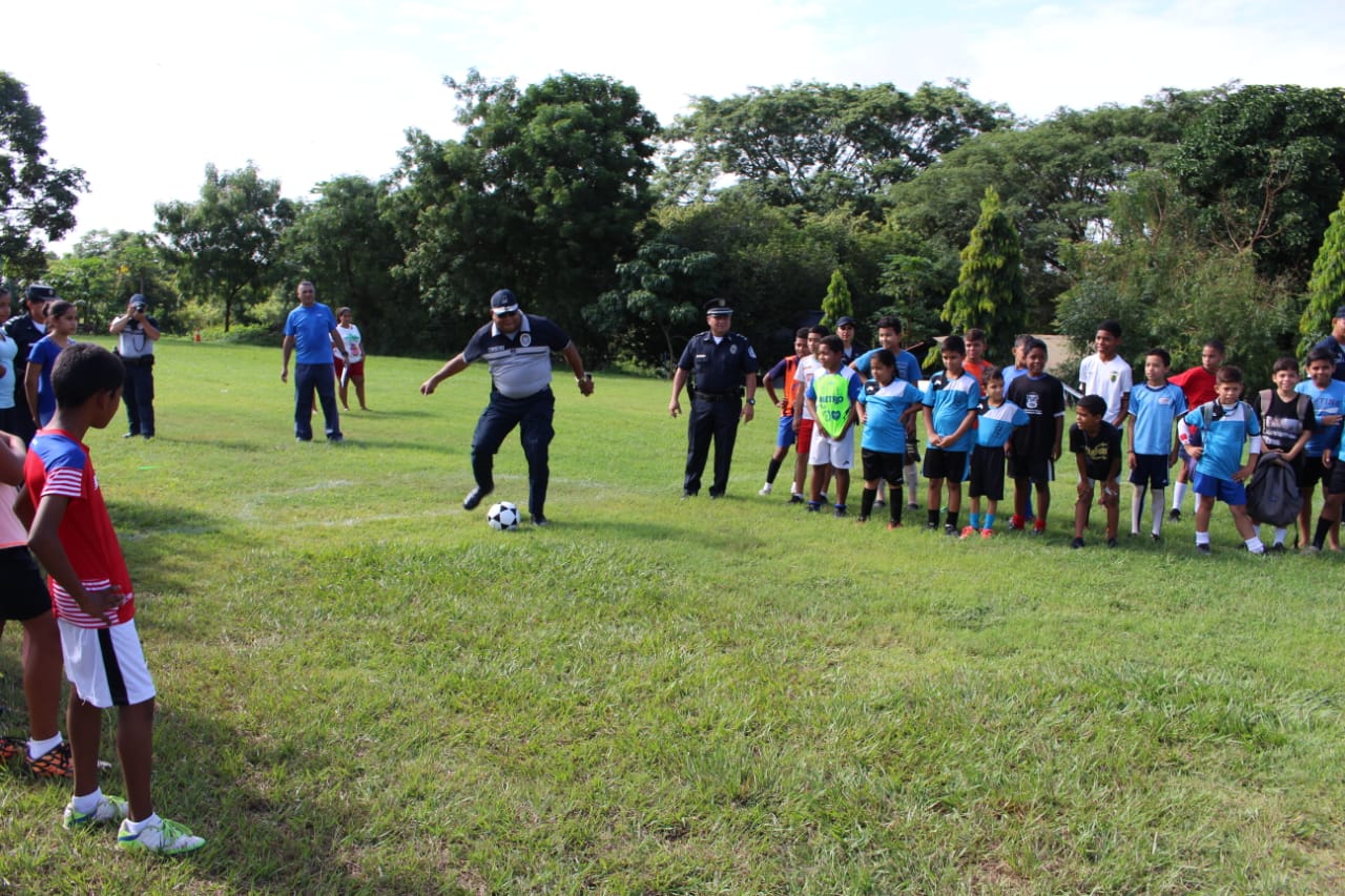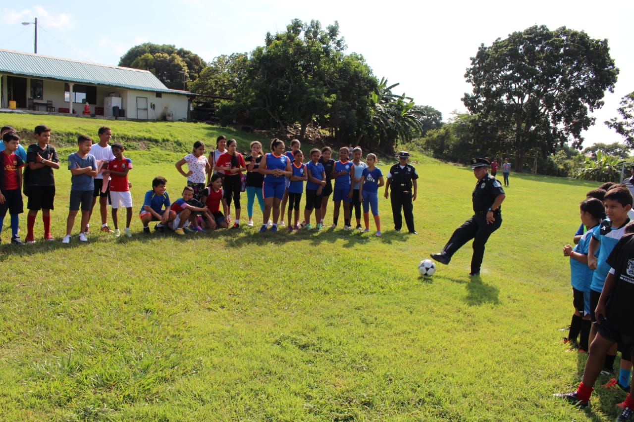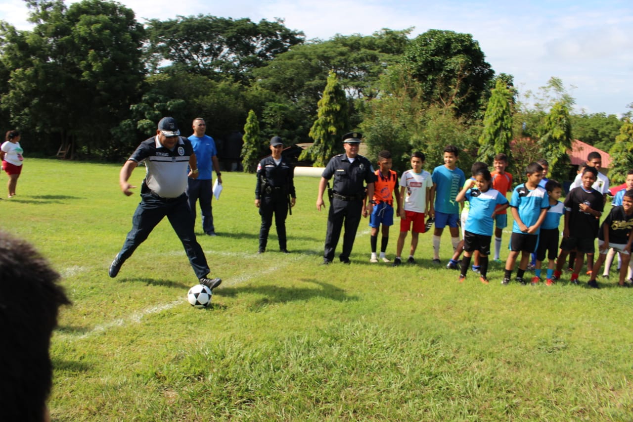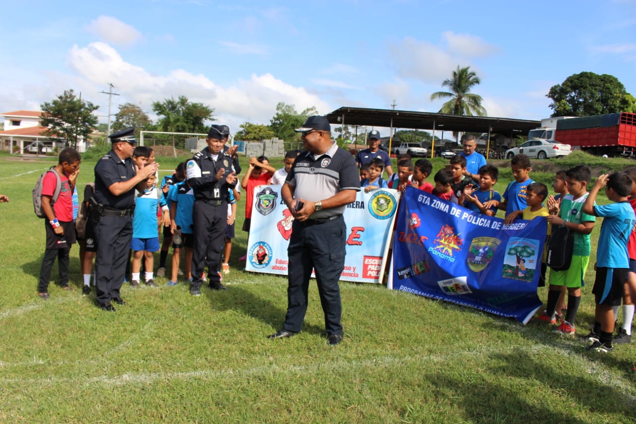 En la cancha de futbol de la 6ta Zona Policial de Herrera, estudiantes de esta provincia inició vacaciones felices, con la inauguración de una liga de fútbol, donde se dieron cita unos 80 niños y niñas que decidieron compartir entre sí, en sus vacaciones. En la apertura de la actividad deportiva estuvo el Comisionado Urracá De La Hoz, jefe de la Zona de Policía de Herrera; quien habló con los niños y niñas exhortándolos a seguir estudiando y a pasarla bien en las instalaciones de la zona. El jefe policial estuvo acompañado por unidades policiales de la Niñez y Adolescencia de Herrera y de la Oficina de Seguridad Ciudadana; quienes también estuvieron compartiendo con estos pequeños en el inicio de esta jornada deportiva. La Policía Nacional en Herrera, continúa trabajando con los programas de Desarrollo Humano y comunitarios en beneficio de los niños y adolescentes; estudiantes de diferentes planteles educativos de la provincia.