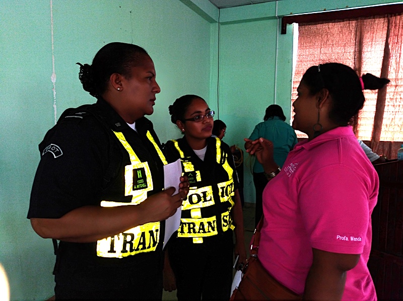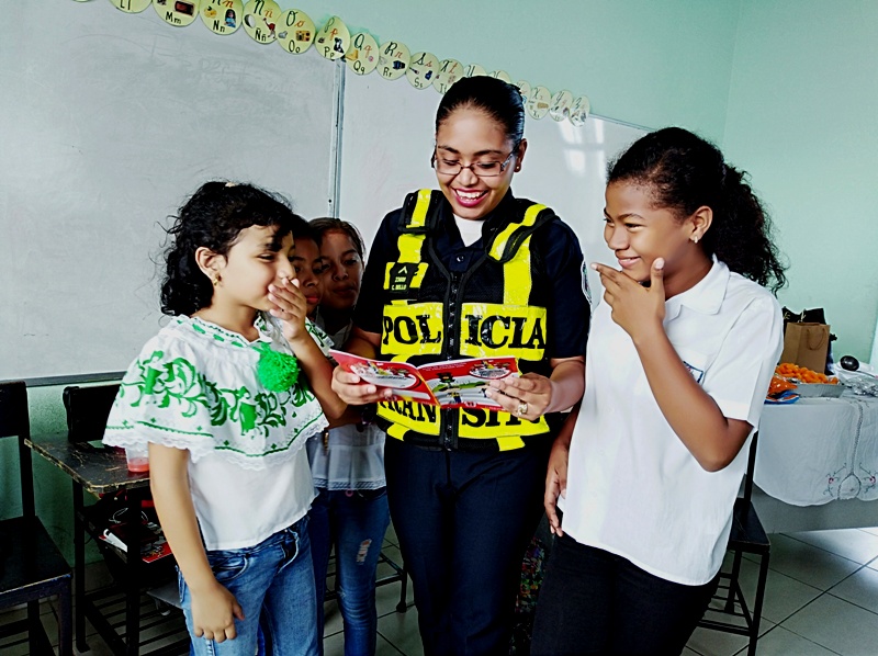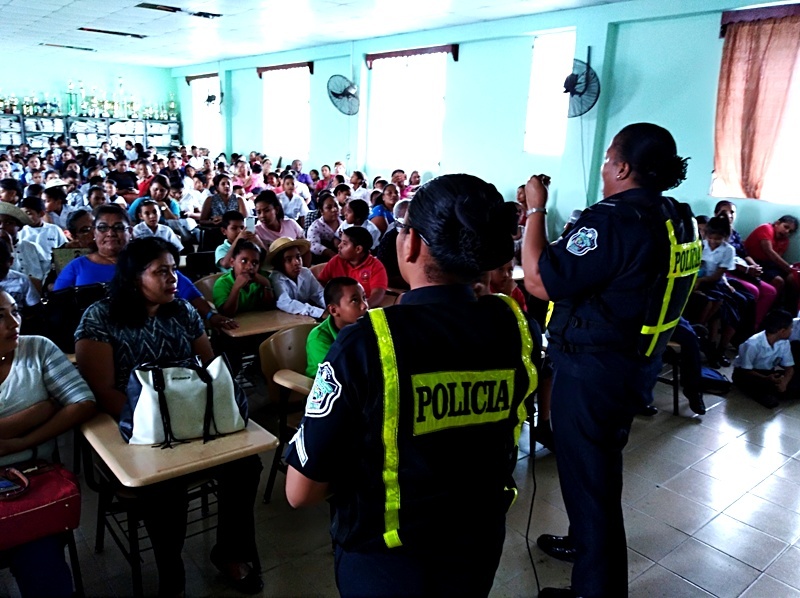 Como parte de los programas de educación vial, la Dirección Nacional de Operaciones del Transito de la Policía Nacional en la Zona de Coclé, participó en una feria familiar en el centro educativo Simeón Conté en la ciudad de Penonomé, donde alrededor de 300 personas entre estudiantes de los IV grados, educadores y padres de familias, recibieron capacitaciones de sensibilización, concientización y prevención. Las charlas estuvieron a cargo de la Teniente Adela Mitchel y la Cabo Cintia Bello profesionales que trabajan en la rama de seguridad vial y que dieron a conocer la importancia de la problemática vial, que existe y los riesgos de no respetar las normas de transito. En tanto la Teniente Mitchell, recalcó la importancia de estas capacitaciones siendo fundamentales para promover la educación vial y más con los niños de nivel primario, porque la información que reciban llevaran a sus hogares, barrios, transmitiendo a sus familiares y amigos, creando de esa manera una cultura vial. Importante recalcar el agradecimiento a las unidades por parte de la directora del plantel Herminda Gómez, padres de familias y los mismos estudiantes que alzaron la voz y en coro gritaron gracias señoras policías. |