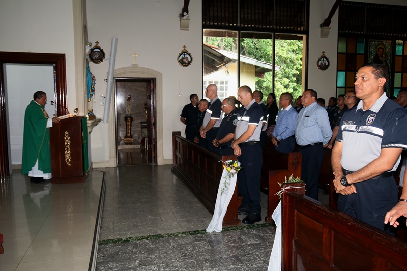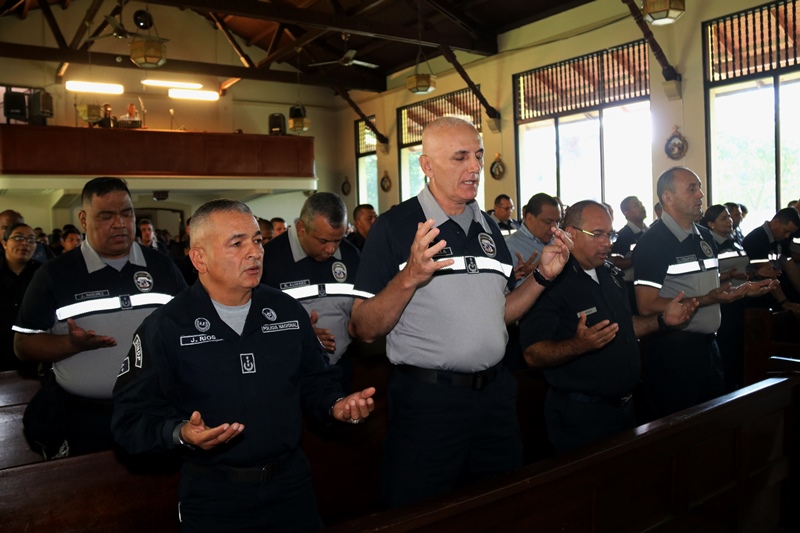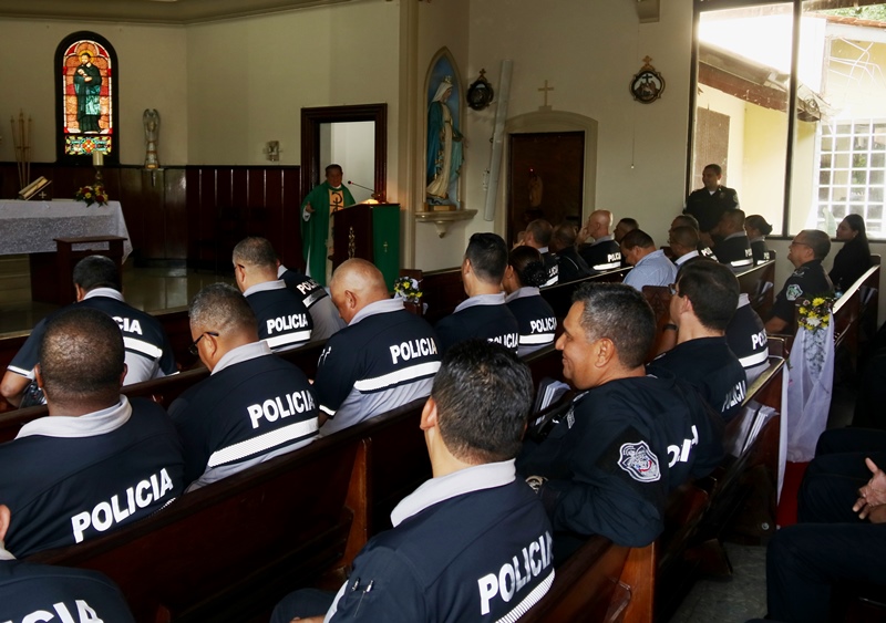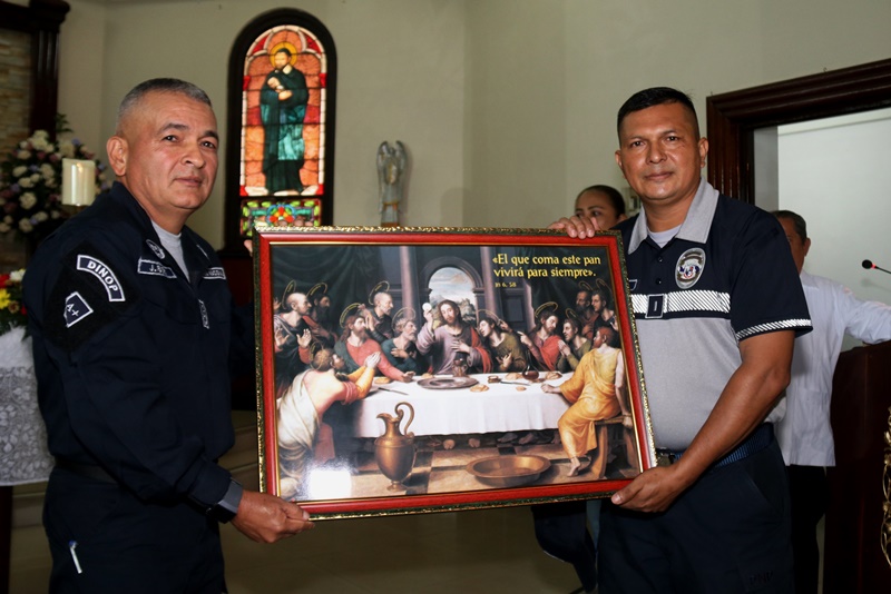 Unidades de la Policía Nacional de servicio en la Dirección Nacional de Operaciones, celebraron su treceavo aniversario, en la sede principal en el corregimiento de Ancón, al compás de tambores y trompetas, además de fuegos artificiales. “La Dirección Nacional de Operaciones realiza una labor de planeación y estrategias de seguridad todo el año, esto requiere de hombres y mujeres con vocación de servicio, profesionales y entregados; ustedes son orgullo institucional” afirmó el Director General Alonso Vega Pino. Los uniformados pertenecientes a esta Dirección participaron de una solemne Eucaristía en la Parroquia Sagrado Corazón de Jesús, precidida por el reverendo Padre Vicente Amable Moreno, párroco de la iglesia. A esta ceremonia religiosa asistieron altos mandos de la Policía Nacional y Dirección de Investigación Judicial; así como miembros juramentados y no juramentando que en armonía elevaba canticos de acción de gracia. “Los hombres y mujeres que pertenecen a esta dirección efectúan las misiones con entrega y vocación de Servicio” sostuvo el Comisionado José Ríos, Director de la Dirección Nacional de Operaciones. En conmemoración al mes de la Biblia y aniversario de esta Dirección se les obsequio las sagradas escrituras; igualmente cuadros con la representación de la última cena del Señor y Vírgenes.