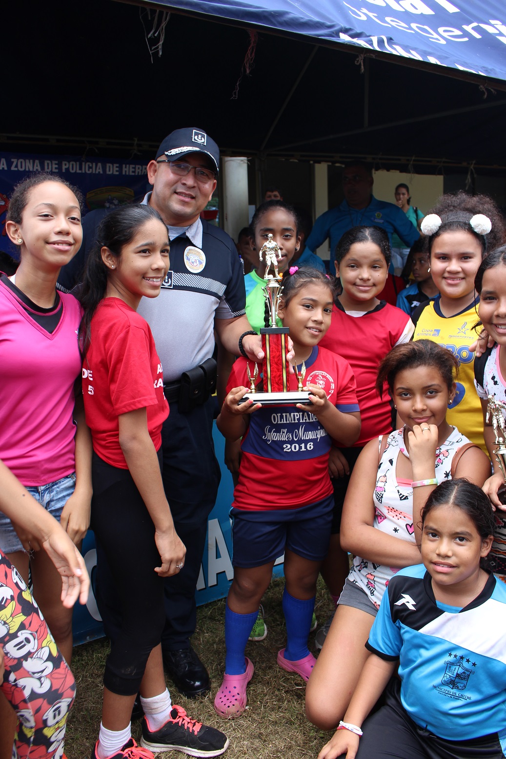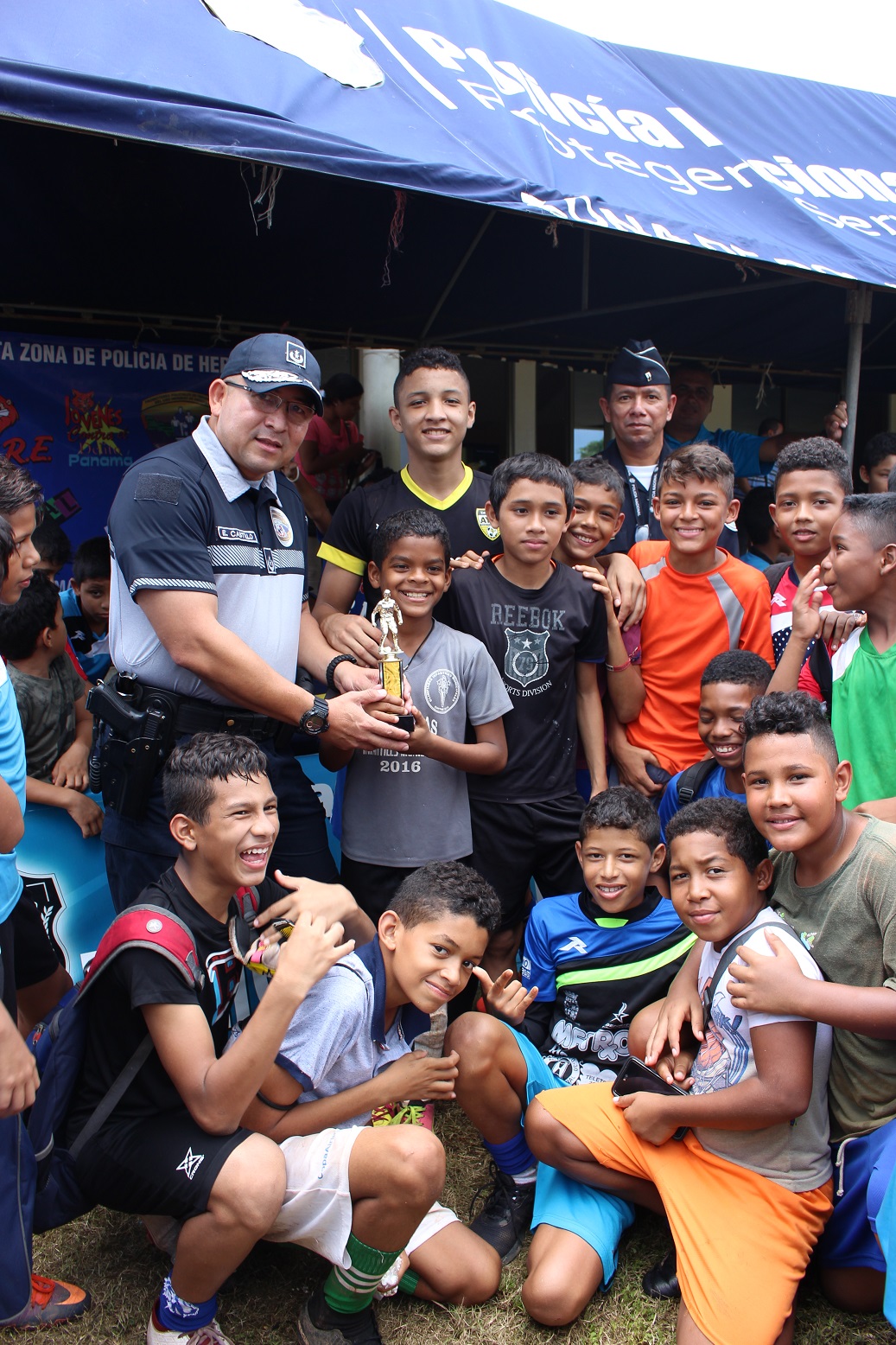 En medio de mucha alegría concluyó la liga de fútbol masculina y femenina de estudiantes en sus vacaciones felices 2018, realizada por la Zona de Policía de Herrera, en la cancha de futbol de la Zona. Esta es una actividad realizada con la iniciativa del personal de la oficina de Seguridad Ciudadana y de la Niñez y Adolescencia de la 6ta. Zona Policial de Herrera. La actividad se celebró como parte de los programas de Desarrollo Humanos que lleva la Policía Nacional en la provincia de Herrera, donde estos pequeños pasaron una semana compartiendo entre sí y los miembros de la institución. En la clausura estuvo el Subcomisionado Efraín Castillo, ejecutivo de la Zona de Policía de Herrera, quien felicitó a todos los pequeños y los exhortó a seguir estudiando. La actividad concluyó con mucho éxito, donde se premiaron los jugadores y equipos más sobresalientes y brindis para para todos los presentes.