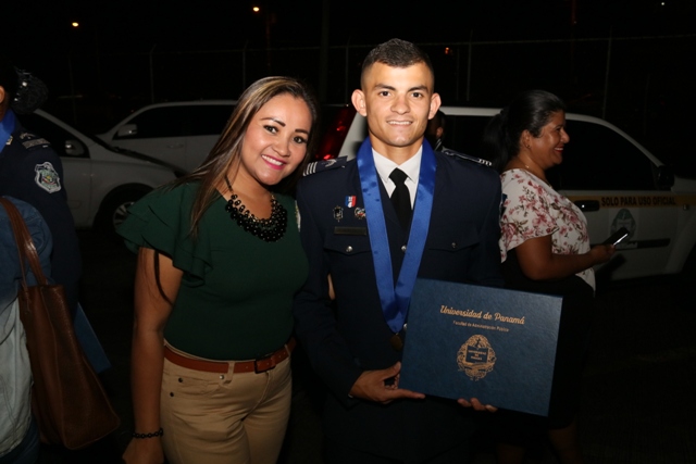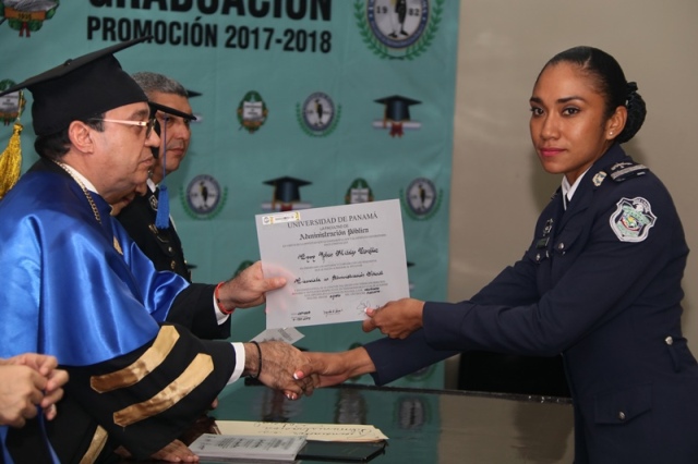 El Rector de la Universidad de Panamá, Eduardo Flores Castro, y el Director General de la Policía Nacional, Alonso Vega Pino, participaron en la Ceremonia de Graduación de la Décimo Octavo (XVIII) Promoción de la Policía Nacional, “General Tomás Herrera” quienes obtuvieron su titulo en Licenciatura en Administración Policial, acto que se llevó a cabo en el Paraninfo de la primera casa de estudios. "Esta es el alma mater de la oficialidad policial panameña, donde se forman los responsables de la conducción de la Policía Nacional y de las ramas de la Fuerza Pública, en atención a los deberes que le asigna el Ejecutivo a la luz de la Carta Magna", dijo el Director General de la Policía Nacional, Alonso Vega Pino. En tanto, el Rector de la Universidad de Panamá Eduardo Flores Castro (UP) hizo hincapié en el compromiso de esta casa de estudios con el aporte que día a día deja al país, sirvan con responsabilidad, eviten tomar malas decisiones. Se trata de 133 Oficiales de Policía que forman parte de la Escuela de Oficiales de Policía Dr. Justo Arosemena (ESOPOL), quienes se incorporan como licenciados en Administración Pública Policial. De estos 28 son damas, 4 forman parte del Servicio de Protección Institucional (SPI), 2 son del Servicio Nacional Aeronaval (SENAN), 1 del Servicio Nacional de Fronteras (SENAFRONT), y 5 provienen de la hermana República del Perú. Este logro es producto del convenio interinstitucional y la alianza estratégica de formación entre la Policía Nacional, y la Universidad de Panamá (UP), Facultad de Administración Pública Policial, para ofrecer un mejor servicio a la seguridad del país, con oficiales comprometidos y de profesión. Entre algunas de las cátedras que fueron impartidas están derechos humanos, procedimientos policiales, doctrina policial, investigación criminal y Derecho Penal, entre otros. Las autoridades presentes fueron quienes entregaron los certificados y colocaron las medallas a los nuevos licenciados. Los tres puestos de honor 1º Alexander Fábrega, 2º Eyra López, y 3º Joseph Pérez, recibieron obsequio y reconocimiento especial por su gran esfuerzo, profesionalismo y dedicación en esta promoción número 18. Con el juramento quedó sellado el compromiso con la Patria de preservar la seguridad y sostener la seguridad. Los padres de familia agradecieron a las autoridades de la Universidad de Panamá (UP), y de la Policía Nacional (PN), por el apoyo incondicional a la carrera policial. |