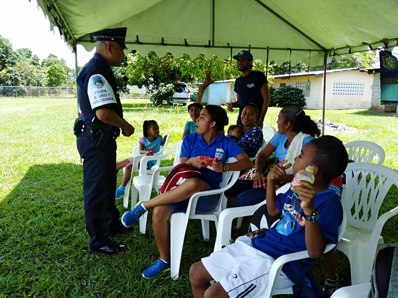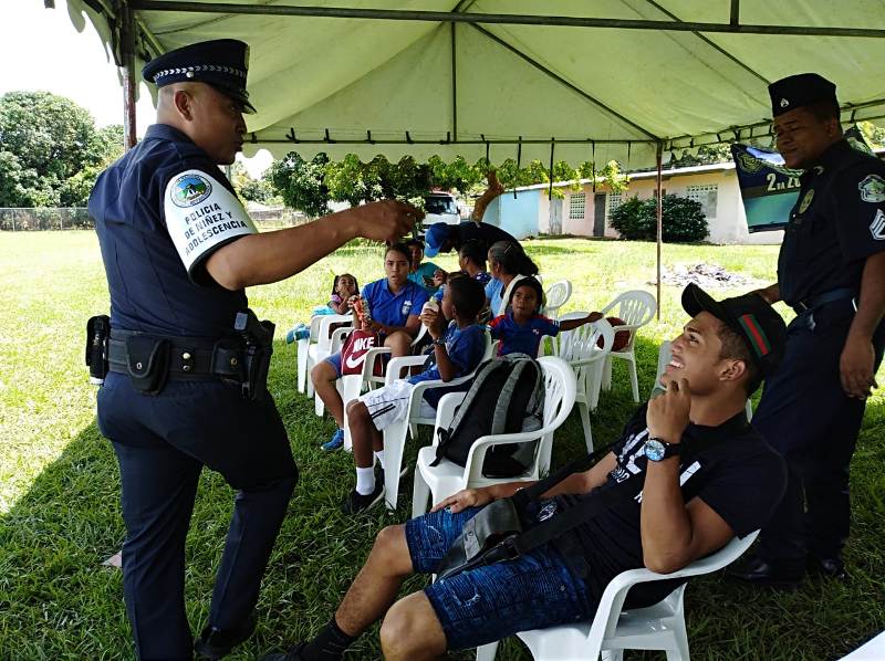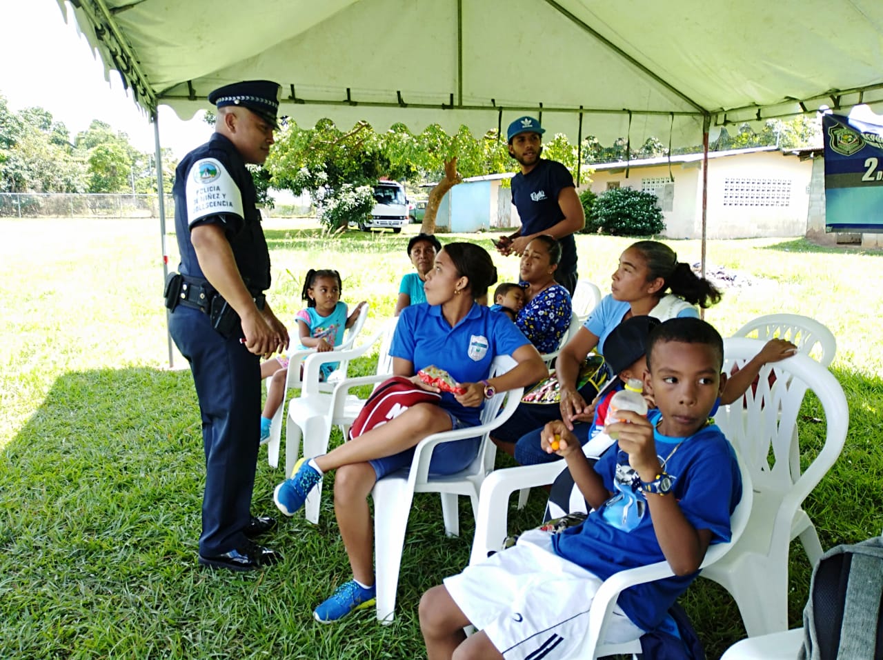 Alrededor de 150 niños, niñas y adolescentes de diferentes lugares del área de Antón, compartieron con unidades del Servicio de Seguridad Ciudadana de la 2da Zona Policial y personal del Ministerio de Seguridad en la realización de los eventos que se llevaron a cabo en las vacaciones de receso. El sargento Algis Bethancourth detallaba que estos eventos tienen como finalidad brindarle a los jovencitos el poder desarrollar sus habilidades y destrezas como un sano esparcimiento utilizando de esa manera su tiempo libre. Entre las actividades que desarrollaron fueron encuentros deportivos de futbol, giras académicas y charlas dirigidas con mensajes de prevención, mismas que fueron expuestas por el sargento Eric Sánchez de Policía de Niñez y Adolescencia de la 2da Zona Policial. Cabe destacar que los lugares visitados fueron el edificio del Tribunal Electoral en la ciudad capital, el mirador de Miraflores en el Canal de Panamá, la alcaldía de Antón y culminaron con el encuentro deportivo el Centro Recreativo en El Chirú de Antón. En este evento donde se realizo un juego amistoso se realizaron entrega de trofeos y obsequios a los ganadores, resultando vencedores los equipos del mismo Chirù. El subteniente Omar Samudio del Servicio de Seguridad Ciudadana felicito al equipo ganador y los exhorto a disfrutar y compartir sanamente
