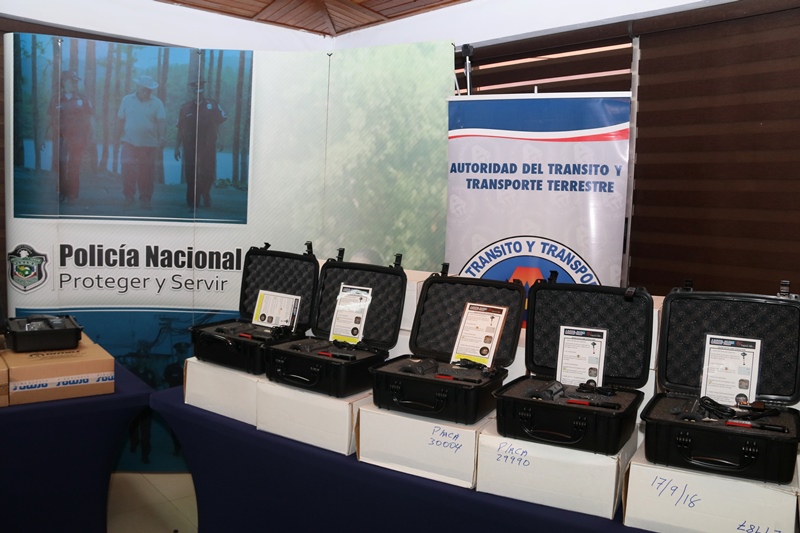 Panamá 17 de septiembre 2018. La Policía Nacional recibió la donación de 24 dispositivos radares y 12 alcohosensores por parte de la Autoridad del Tránsito y Transporte Terrestre (ATTT) cuyo propósito es reforzar la vigilancia y la supervisión de la seguridad vial en las calles y carreteras del país. “Agradezco a nombre de la Institución y de la sociedad a la Autoridad del Tránsito y Transporte Terrestre por la entrega de estos equipos, que nos ayudará a realizar el trabajo de proteger y servir a la población panameña”, destacó el Director de la Policía Nacional Alonso Vega Pino. Por su parte el Director General de la ATTT, Julio González, manifestó que estos insumos entregados son de alta tecnología y serán utilizados para determinar el porcentaje de alcohol en el aliento de los conductores; a la vez de radares destinados a medir la velocidad de los vehículos y sancionar a los que exceden los límites permitidos. En tanto, el Comisionado Ismael Herrera jefe de la Dirección Nacional de Operaciones del Tránsito, manifestó que la ciudadanía tiene que tomar conciencia de no conducir bajo los efectos del alcohol, con cansancio porque todos estos factores traen consecuencia, además instó a los conductores respetar las normas del tránsito. Esto equipos donados será distribuidos a nivel nacional, para prevenir y salvaguardar la vida de los panameños y extranjeros en nuestro territorio nacional.