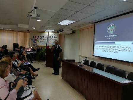 Con el lema “Experiencia de la Educación Continua: Universidad-Sociedad-Estado”, la Policía Nacional a través de la Dirección Nacional de Docencia, participó este miércoles 19 de septiembre de una mesa redonda en el marco del segundo Congreso Nacional Universitaria de Panamá. El Subcomisionado Julio Wong Garrido, jefe de la Escuela de Oficiales “Dr. Justo Arosemena”, participó con el tema “Los programas de Educación Continua como parte de la Profesionalización del servicio de Policía”. Sobre ese punto el Subcomisionado Wong destacó el trabajo que realiza la Policía Nacional con algunas naciones amigas como Costa Rica, Guatemala y Haití, en capacitar a sus miembros policiales. El evento fue presidido por el Vicerrector de Extensión de la Universidad de Panamá Magister Denis Javier Chávez y la Doctora Alma Montenegro de Fletcher, así como la participación de Cadetes de ESOPOL. Este este evento académico se resaltó las alianzas existentes entre la Universidad de Panamá y la Policía Nacional en el desarrollo profesional del talento humano de nuestra institución.