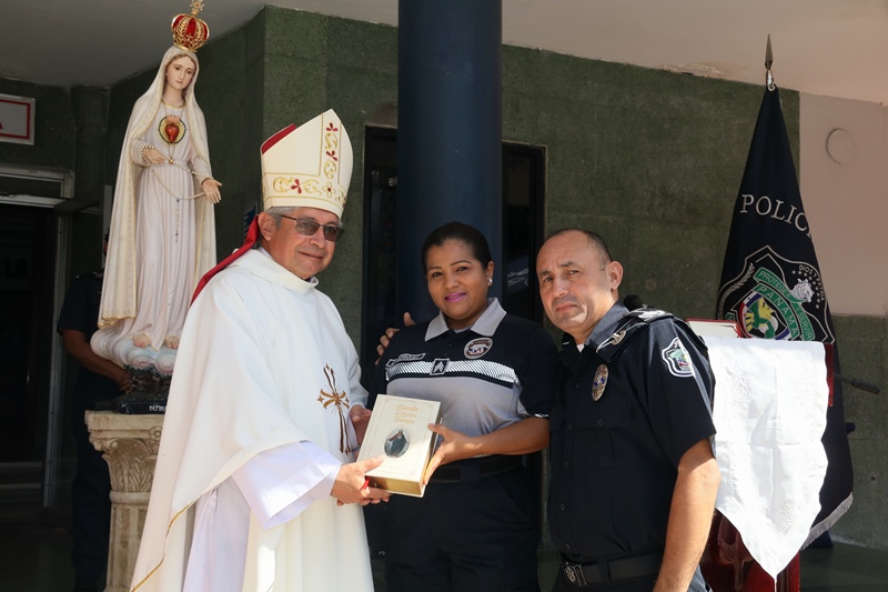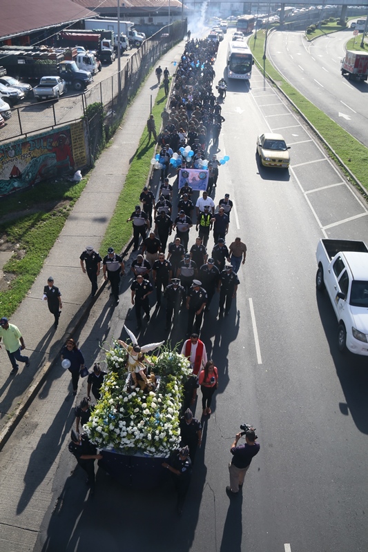“El papel de San Miguel Arcángel es el papel que hace la Policía Nacional, nosotros somos los guardianes de los ciudadanos”, destacó el Director General de la Policía Nacional, Alonso Vega Pino durante la misa en honor al patrono y protector de los uniformados “San Miguel Arcángel”, que se desarrolló en la sede de la institución en el corregimiento de Ancón. La familia policial está de fiesta patronal. Honró hoy a San Miguel Arcángel, patrono de la Capilla que lleva su nombre, motivo por el cual se realizó una procesión, misa, entrega de canastillas, y obsequios a los presentes. El Director General de la Policía Nacional, Alonso Vega Pino junto al Directorio, y miembros de otros estamentos de seguridad, encabezaron la procesión que partió en horas de la mañana desde la subestación policial de San Miguel, este sábado 29 de septiembre de 2018. La Eucaristía fue presidida por el obispo Pedro Hernández Cantero, y los capellanes Edgar Flores y Arnulfo Giménez, a la que acudieron hijos de unidades policiales quienes están recibiendo clases de catequesis, para posteriormente realizar su Primera Comunión y Confirmación, además de otras personalidades que nos honraron con su presencia. El Pedro Hernández Cantero hizo énfasis en el trabajo que realizan las unidades policiales como un compromiso de todos, los instó a seguir trabajando por la seguridad y tranquilidad de los ciudadanos. San Miguel Arcángel se le considera como el Patrón de los soldados, las unidades policiales se encomiendan a él en cada labor realizada a lo largo y ancho del país.