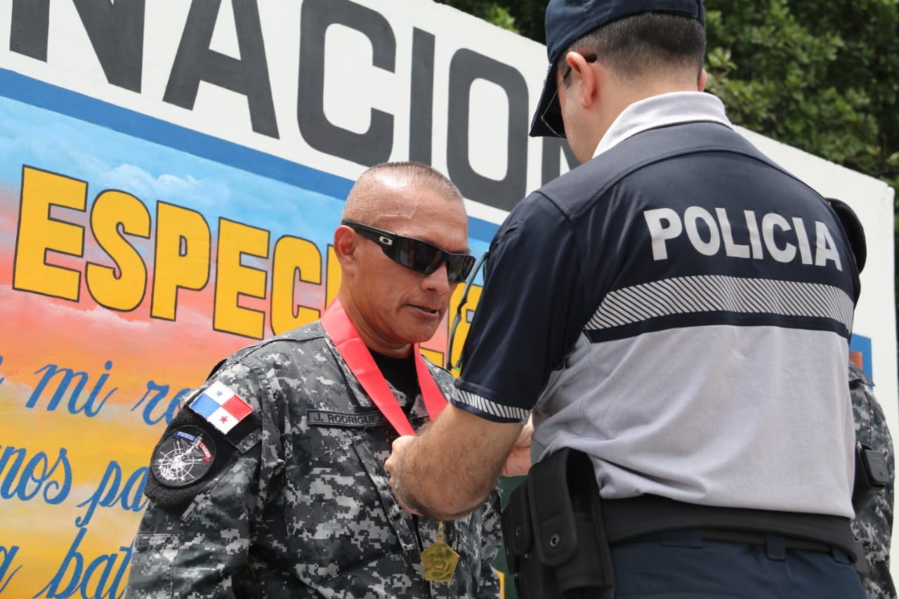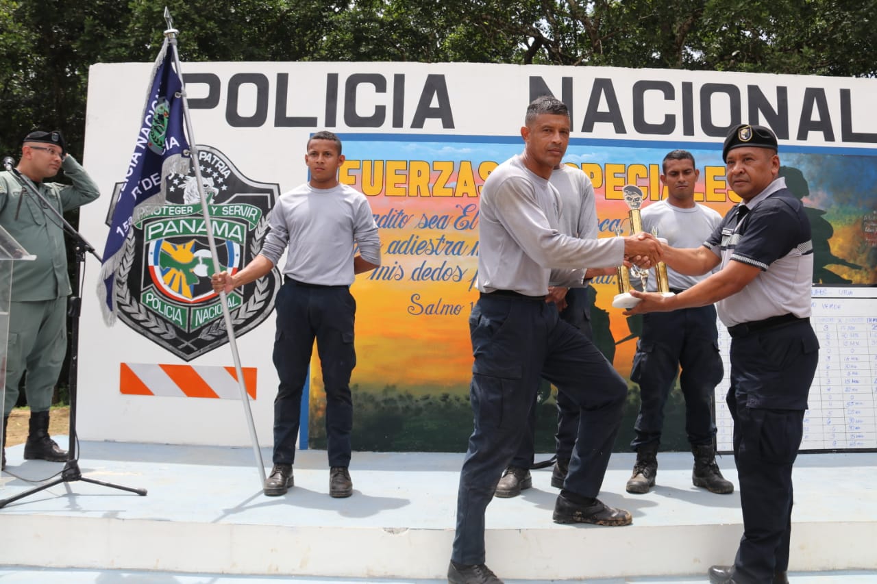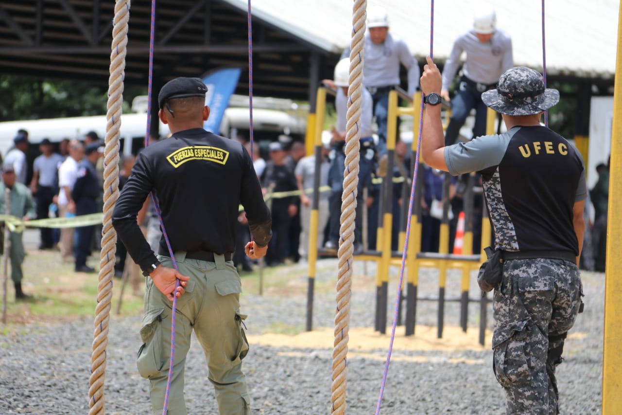 Con una solemne misa inició la celebración del VIII aniversario de la Unidad de Fuerzas Especiales Contraterrorismo (UFEC) y la Unidad Táctica de Operaciones Antidrogas (UTOA) en Cerro Tigre, este 5 de octubre de 2018. Los uniformados que pertenecen a la Dirección Nacional de los Servicios Policiales Especiales (DINASPE), realizaron la primera Competencia pista de obstáculo denominado “”Infierno Verde” donde participaron 16 equipos de las diferentes direcciones, zonas y dependencias, que consistió en poner en prácticas sus destrezas físicas y habilidades. “Este es un evento que busca compartir entre compañeros de otras dependencias y sepan cómo son los entrenamiento en la UFEC” destacó el comisionado Javier Rodríguez el jefe de la Dirección Nacional de los Servicios Policiales Especiales. Durante la competencia se hicieron varios reconocimientos uno de ellos al teniente Marcos Santos y al cabo 2 Noel Quintero de la UFEC quienes se han destacado en la labor policial y además por su alto grado de responsabilidad, disciplina y sacrificio También, se condecoró al Comisionado Javier Rodríguez jefe de la Dirección Nacional de los Servicios Policiales Especiales y al mayor Friederick Almengor subdirector Nacional de los Servicios Especiales Policiales por su entrega y dedicación en el trabajo realizado. Finalmente, se dio las premiaciones de la competencia donde el Grupo de Apoyo al Servicio se coronó campeón con 10 minutos 15 segundo de recorrer la pista de obstáculo, mientras que el segundo lugar lo ocupó el equipo del Bloque de Búsqueda con 11 minutos 25 segundos y el tercer lugar el Instituto Superior Policial con 18 minutos 02 segundos. |