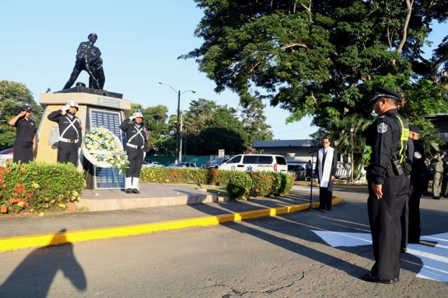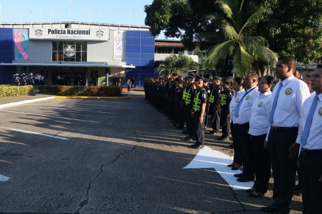 “No dejó de destacar la gran labor que llevan adelante las unidades de la Policía Nacional, quienes siempre están comprometida en brindar seguridad y no dejamos pasar por alto los delitos, siempre estamos para brindar respuesta a la ciudadanía", indicó el Director General encargado, Jainto Gómez durante acto cívico correspondiente al mes de octubre. El jefe policial agradeció a los uniformados y miembros no juramentados por dar lo mejor de cada uno en pro de la seguridad del país. El Capellán Edgar Flores fue encargado de dar a bendición en este acto civico en el que resaltó la labor abnegada de las unidades policiales siempre caminando de la mano de Dios. "Donde haya odio siembra amor, donde haya discordia lleva la unión, y si existe la duda, compartamos y sembremos la fe, y en la tiniebla seamos la luz, dando es como se recibe”, destacó en sus palabras. El saludo obligado a la estatua de los caídos en cumplimiento del deber, encabezada por el Director General de la Policía Nacional, (encargado), Jacinto Gómez, y miembros del Directorio Policial, quienes colocaron una ofrenda floral. Un grupo de unidades policiales pertenecientes a la Asociación de Reservistas de la Policía Nacional, también participaron del acto cívico. |