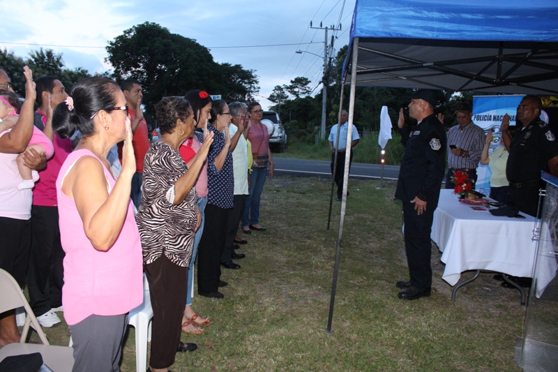 Fortaleciendo la convivencia pacífica, unas 50 familias de la barriada Calle 1era en Llano Marín en Penonomé se beneficiarán tras la inauguración del programa de Seguridad "Vecinos Vigilantes" de la Policía Nacional. Acto que se realizó con los moradores del sector y se contó con la presencia del comisionado Aníbal Prados jefe de la Zona Policial, el equipo de trabajo del Servicio de Seguridad Ciudadana, invitados que acompañaron. Luzmila Saturno coordinadora del programa en este sector, manifestó que el programa de vigilancia ha tenido buena aceptación en otros lugares y la barriada tomó la decisión formando el grupo que será los ojos vigilantes de la Policía en nuestra comunidad. Agregó que se sienten complacidos por ser parte colaboradora de la institución de seguridad que los beneficiará con capacitaciones en prevención y saber cómo actuar ante los amigos de lo ajeno. El comisionado Prados exhortó a los moradores a trabajar juntos por mejores comunidades, esto permitirá así una estrecha colaboración preventiva. Posteriormente, los presentes fueron invitados a la develación del letrero y la colocación de la calcomanía y logo del "Programa de VECINOS VIGILANTES". |