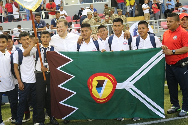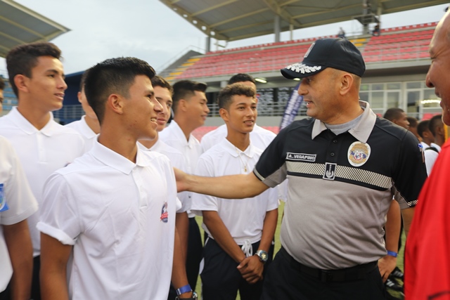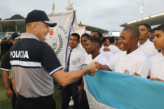 El mandatario Juan Carlos Varela inauguró en el Estadio Maracaná, El Chorrillo, la cuarta versión del Torneo Intercolegial de Fútbol “Copa Presidente de la República”, en el que participan 48 equipos en las categorías sub-15 y sub-18. “Ha sido para mí un honor llevar este torneo desde el año 2015 cuando se creó para enriquecer la vida del estudiante mediante el deporte. En estos cuatro años hemos comprobado que el estudio y el deporte son el mejor camino”, destacó el Presidente. La Copa Presidente es producto de una coordinación interinstitucional de la Policía Nacional, MEDUCA y Pandeportes, siguiendo los lineamientos del Plan de Gobierno de Convivencia Pacífica, que busca la confraternidad de los jóvenes a través de una actividad sana. El jefe del Ejecutivo consideró que este evento deportivo intercolegial se ha convertido en uno de los más esperados, pues trae consigo ventajas y beneficios para los estudiantes y para sus familias, que los acompañan durante todo el torneo. Instó a los jóvenes a transmitir en la sociedad todos los valores que aquí obtienen: la disciplina, el respeto, el trabajo en equipo y la puntualidad y les aseguró que estos juegos contribuirán a su formación personal, fortalecerán su carácter, su espíritu de grupo, su disciplina y también su desarrollo físico. “Todo esto forma un excelente estudiante, y un gran profesional para el futuro”. El juego inaugural se lo disputaron la Escuela Profesional Isabel Herrera de Obaldía y el colegio El Zapallal. Los partidos, que se extenderán hasta el 1 de noviembre, se jugarán en cinco estadios del país: Bugaba, en la provincia de Chiriquí; Los Milagros, en la provincia de Herrera; Agustín ‘Muquita’ Sánchez, en la provincia de Panamá Oeste, Maracaná y Luis Ernesto ‘Cascarita’ Tapia en la ciudad capital.