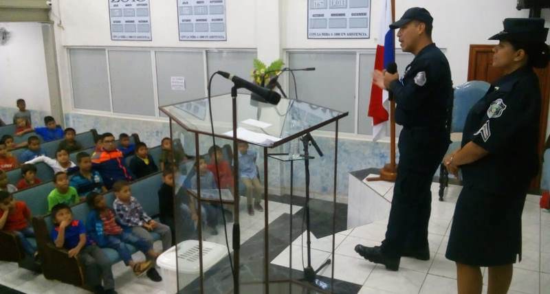 Una docencia preventiva de seguridad, dirigida a jóvenes y adultos de la Iglesia Bautista Bíblica, ubicada en la barriada el Varital de la ciudad de David, ofrecieron unidades del Servicio de Seguridad Ciudadana, de la 4ta. Zona Policial de Chiriquí. Esta actividad se dio con la finalidad de crear conciencia en la juventud chiricana y rescatar los valores en el hogar y en la sociedad. Se trataron temas como: “Seguridad Ciudadana”, Los niños son el futuro de nuestra sociedad y país”, Los deberes y derechos de los niños, La importancia de la Familia en la Sociedad y recomendaciones preventivas de seguridad. Participaron más de 500 personas que asisten a este centro religioso. Posteriormente, el Grujucan “Grupo Juvenil Canino”, efectuó por cuarto 4to. año una exhibición canina, la cual llevó alegría a todos los presentes. “Reconocemos que la Policía Nacional es la institución encargada de mantener el orden y la paz entre los miembros de nuestras comunidades, labor que por cierto es de gran importancia. Es por ello que queremos darle las gracias por su valioso apoyo dado a los ciudadanos que conforman nuestro templo”, manifestó el Pastor de Encargado de la Iglesia Bautista Bíblica de David. |