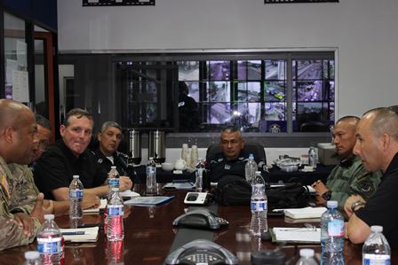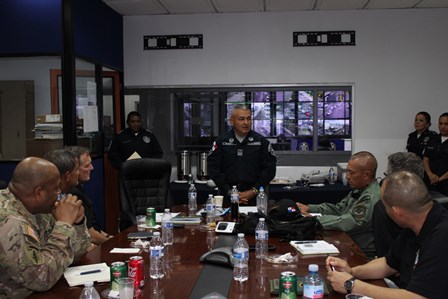 La Policía Nacional a través de la Dirección Nacional de Operaciones y la Dirección Nacional de Docencia, recibieron este miércoles 24 de octubre a una delegación del Comando de Fuerzas Especiales Sur de Los Estados Unidos, con el objetivo de determinar el estatus de la cooperación y nuevas capacitaciones a las unidades de esta Instituciòn. Los miembros del Ejército Sur, del Buró Federal de Investigaciones (FBI), Aduanas y Patrulla Fronteriza, se interesaron en las capacidades, habilidades y destrezas de nuestras unidades en el combate contra la delincuencia organizada, y el narcotráfico. El Comisionado José Miguel Ríos, Director Nacional de Operaciones, destacó en la reunión que las unidades policiales necesitan un readiestramiento, que conlleve a perfeccionar técnicas y tácticas, permitiendo el adquirir destrezas para enfrentar sus propios retos. Prueba de ello comentó el jefe de Operaciones, las capacitaciones que ha realizado las unidades del Servicio Policial Motorizado conocido como Linces en la República de Paraguay, Costa Rica, y República Dominicana, que ha logrado buenos beneficios en esas naciones en la lucha contra la delincuencia. En la reunión estuvieron presentes el Director Nacional de Docencia, Comisionado Manuel De León, el Comisionado Javier Rodríguez, Director Nacional de Servicios Policiales. Por parte de la delegación estadounidense participaron el oficial técnico nivel 4 Loubriel Jerico Jefe de Operaciones de Centro América para el Comando Sur, Teniente Coronel Noel Gil enlace del FBI del Comando Sur, Contratista Williams Zaiser, y el Teniente Coronel Sean Reese, Oficial de enlace de Fuerzas Especiales a la Embajada de Los Estados Unidos en Panamá, entre otros.