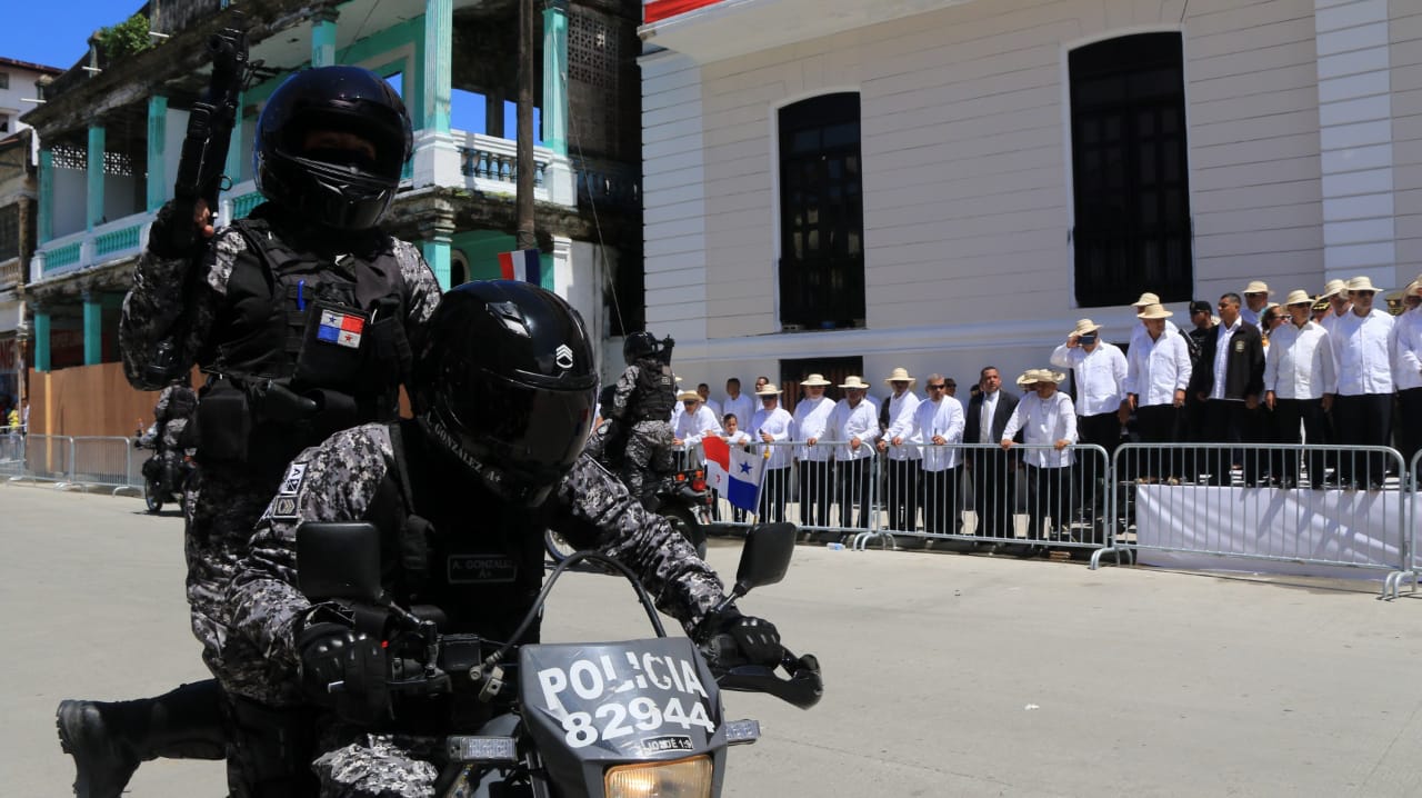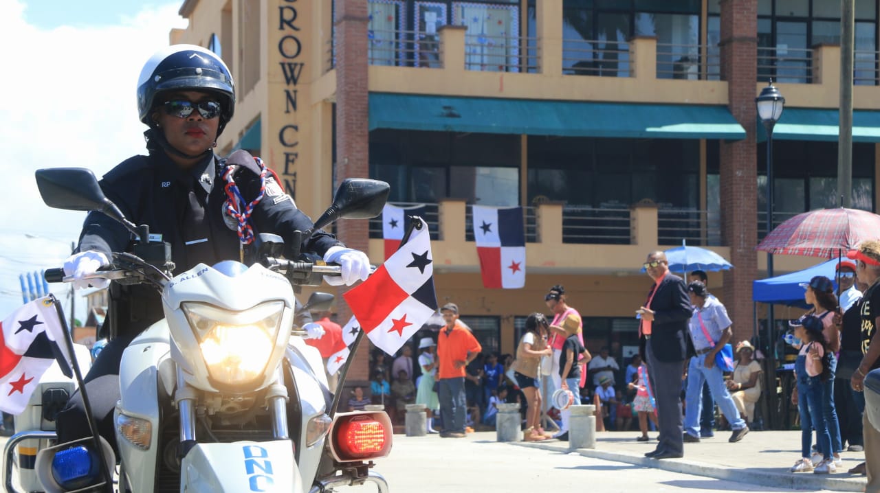 Panamá, 5 de noviembre de 2018. Con una delegación cargada de elegancia, disciplina y mucho fervor patriótico, así se presentó en la ruta del desfile este 5 de noviembre la Policía Nacional, la cual fue ovacionada por los colonenses, visitantes y hasta extranjeros que se dieron cita en la celebración de la adhesión de la provincia de Colón a la gesta separatista de 1903. El Presidente de la República, Juan Carlos Varela, el Director General Alonso Vega Pino junto al Subdirector General, Jacinto Gómez y miembros del Directorio saludaron a la delegación en estos actos que conmemoraban a consolidación de la Separación de Panamá de Colombia. Horas antes el Mandatario de la República entregó la Bandera Nacional al joven Emanuel Fletcher, capitán del equipo de fútbol de Altos de Los Lagos, quien fue el abanderado de este desfile. Cabe destacar que este equipo representó a Panamá en la Copa Disney, quedando campeón en este torneo. Ya en el desfile, los motorizados de la Dirección Nacional de Operaciones de Tránsito, al mando del capitán Eustiquio Cedeño, a bordo de sus motos realizaron diferentes acrobacias, demostrando su agilidad y destreza. Seguido, la Banda de Música, guiada por el Tambor Mayor el Sargento Segundo Franklin Jaramillo, interpretó diversas tonadas alusivas a la fecha, las que fueron aplaudidas por los presentes. Las unidades del Servicio Motorizado Policial “Lince” no se quedaron atrás, se destacaron con diversas demostraciones de su labor, mientras se encuentran en las calles. Luego, los cadetes de la Escuela de Oficiales de Policía Dr. Justo Arosemena, con elegancia y disciplina saludaron al público presente, demostrando su vocación al servicio de la Patria. Los niños y niñas del Centro de Atención Integral para la Primera Infancia de la provincia de Colón “Los Pininos” acompañaron a la delegación policial, luciéndose con su presentación con mensajes alusivos a la Educación Vial, así como tocando diversas tonadas. Además de participar de este desfile, unidades policiales se apostaron en las diferentes calles y avenidas de la provincia de Colón para brindar seguridad y garantizar la sana convivencia de los todo el pueblo colonense. |