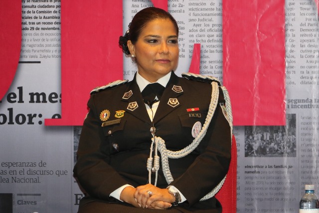 La Comisionada de la Policía Nacional Ayda Villarreal de Jaén, jefa del Servicio de Policía de Niñez y Adolescencia, participó en el conversatorio “Mujer Made In Panamá” que se llevó a cabo en la noche de este martes 27 de noviembre en el Salón Cristal del Hotel Westin Panamá ubicado en Costa del Este. Villarreal calificó este conversatorio como un gran honor el que miembros de la sociedad civil reconozcan el esfuerzo y la labor que a diario realiza la Mujer Policía. María Fernanda Robaina de Maduro, Directora de la Revista Mujer explicó que este es un evento dirigido a mujeres que desean empoderarse y enriquecerse con la historia de vida de las mujeres panelistas. Igualmente amplió que el evento se llama “Mujeres Made In Panama” o sea mujeres hechas en Panamá quienes se desarrollan formal, social, cultural y profesionalmente en nuestro país. En el conversatorio moderado por María Fernanda Robaina de Maduro, también participaron la abogada Gisela de Porras; la presidenta del Comité Paralímpico Esther Faskha además de la periodista Gisela Tuñón quienes realizaron importantes aportes con sus experiencias vividas dentro de sus distintas profesiones y metas. |