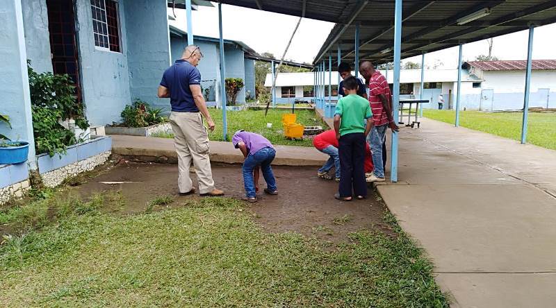 Una jornada de limpieza del área verde y mantenimiento en el Centro de Rehabilitación de Menores “Arturo Miró”, conocida también como la Granja de Menores, ubicada en el sector de Potrerillos, distrito de Dolega, realizaron unidades del Servicio de Policía de Menores de la 4ta. Zona Policial de Chiriquí. Además de mantener las áreas verdes limpias y evitar que sean criaderos de alimañas, se busca entre otras cosas, interactuar con los jóvenes que allí conviven; quienes en su mayoría están por riesgo social, para su rehabilitación y que vean a los miembros de la Policía Nacional como sus amigos. Estos menores, tienen entre 10 y 15 años y provienen de diferentes provincias. Actualmente unos 50 niños comparten este albergue. La Policía Nacional por realizar esta buena acción en beneficio de la juventud. La licenciada Evidelia Martínez, directora del Centro de Rehabilitación de Menores, felicitó a la Policía Nacional en especial al Servicio de Niñez y Adolescencia por interactuar con los jóvenes en riesgo social.
