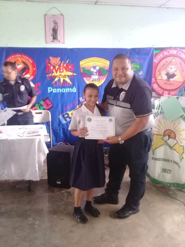 Unidades de la Policía Nacional de servicio de Policía de Niñez y Adolescencia de la 4ta. Zona Policial de Chiriquí concluyó, con el mejor de los éxitos, las capacitaciones de los programas de Desarrollo Humano, en planteles educativos de primaria y secundaria, públicos y privados. Aproximadamente 5 mil 60 estudiantes fueron beneficiados con las exposiciones que brindan las unidades pertenecientes a ese servicio. Mil 916 obtuvieron sus certificados de culminación del curso D.A.R.E., cuyas siglas significan Educación para la Resistencia al Abuso de Drogas y Violencia. El objetivo principal del mismo es eliminar o retardar el consumo de tabaco, alcohol o cualquier otro tipo de drogas. En tanto, 2 mil 715 educandos adquirieron los conocimientos del curso de Educación y Entrenamiento en Resistencia a las Pandillas (GREAT). Por su parte, 181 recibieron charlas sobre Niños y Niñas Seguras, y 242 sobre PIDRO. Los uniformados dialogan con los estudiantes sobre la importancia que tienen los diferentes temas de los manuales utilizados para que sepan tomar buenas decisiones, comunicarse claramente, controlar la ira, respetar al prójimo y ser un buen ciudadano. Además, se les habla acerca de las pandillas, como responder a la presión de grupos, al acoso escolar, el papel que desempeñan como estudiantes en las escuelas y en la comunidad. |