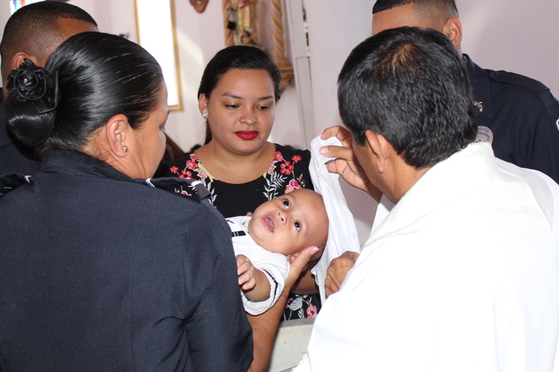 En una ceremonia religiosa en la iglesia San Juan Bautista en Penonomé, hijos de unidades de la 2da Zona Policial, recibieron el sacramento del Bautismo. La actividad dio inicio con la eucaristía ofrecida por el sacerdote y capellán de la Zona Edilberto Ortiz, quien se dirigió a los presentes con predicas y testimonios del bautismo, realizando este acto. "Una persona ungida con agua, simboliza y purifica su vida religiosa" dijo. Posteriormente los presentes fueron testigos de la ceremonia, iniciando con la unción con el crisma, la imposición de la vestidura blanca y la entrega del cirio, donde los infantes, padres y padrinos compartieron la bienvenida a la comunidad cristiana. Esta actividad organizada por el departamento de Trabajo Social de la Zona, se realiza con la finalidad de fortalecer los lazos familiares de la familia uniformada.