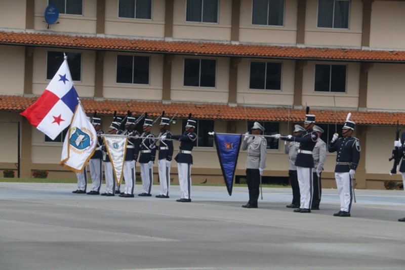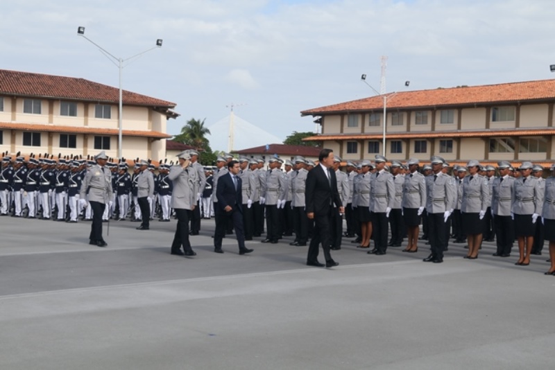 Panamá, 7 de enero de 2019. “Me siento orgulloso por la disciplina de los 143 nuevos oficiales con los que cuenta el país, la defensa a la Patria se realiza día a día, permanezcan leales a su institución y al Estado” dijo el Mandatario de la República Juan Carlos Varela durante acto de graduación de subtenientes de la Promoción XVIII que lleva por nombre “general Tomás Herrera” de la Escuela de Oficiales de Policía Dr. Justo Arosemena. Los nuevos subtenientes recibieron de manos del Presidente de la República el sable que simboliza el mando, honor, valentía y convección y compromiso con la Patria. “La defensa de la Patria se realiza cada día, cuando entregamos lo mejor de nosotros en nuestro trabajo, cuando salvamos una vida. Estimados graduados: permanezcan leales a su institución y al Estado, la Patria se los agradecerá” destacó el Presidente Varela. En tanto, el Ministro de Seguridad Pública, Jonattan Del Rosario agradeció a las unidades de la Fuerza Pública la labor que llevan a cabo día a día e instó a los nuevos oficiales a continuar con la vocación de servicio, teniendo siempre presente los valores inculcados en este centro de enseñanza. Los tres primeros puestos de la promoción XVIII, los subtenientes Raúl Caicedo, Ricardo Fabris y a Nicole González recibieron por parte Director General Alonso Vega Pino la imposición de la Medalla de Condecoración Dr. Justo Arosemena. “Esta promoción es el producto de una suma de saberes que integran su perfil profesional, donde lo técnico se añade a lo tecnológico y científico”recalcó el director policial. La décimo octava promoción está conformada por 4 unidades del Servicio de Protección Institucional, 2 del Servicio Nacional Aeronaval, 1 del Servicio Nacional de Fronteras y 5 peruanos. Se unieron a los subtenientes panameños, 16 oficiales graduados en el extranjero; 2 de Uruguay, 4 de Chile, 4 de Argentina, 1 de Colombia, 2 de Paraguay y 3 de Perú. El acto contó con la presencia de ministros de Estado, autoridades de la provincia de Colón, Agregados Militares y Navales, miembros del Directorio Policial, directores de los demás estamentos de seguridad e invitados especiales.