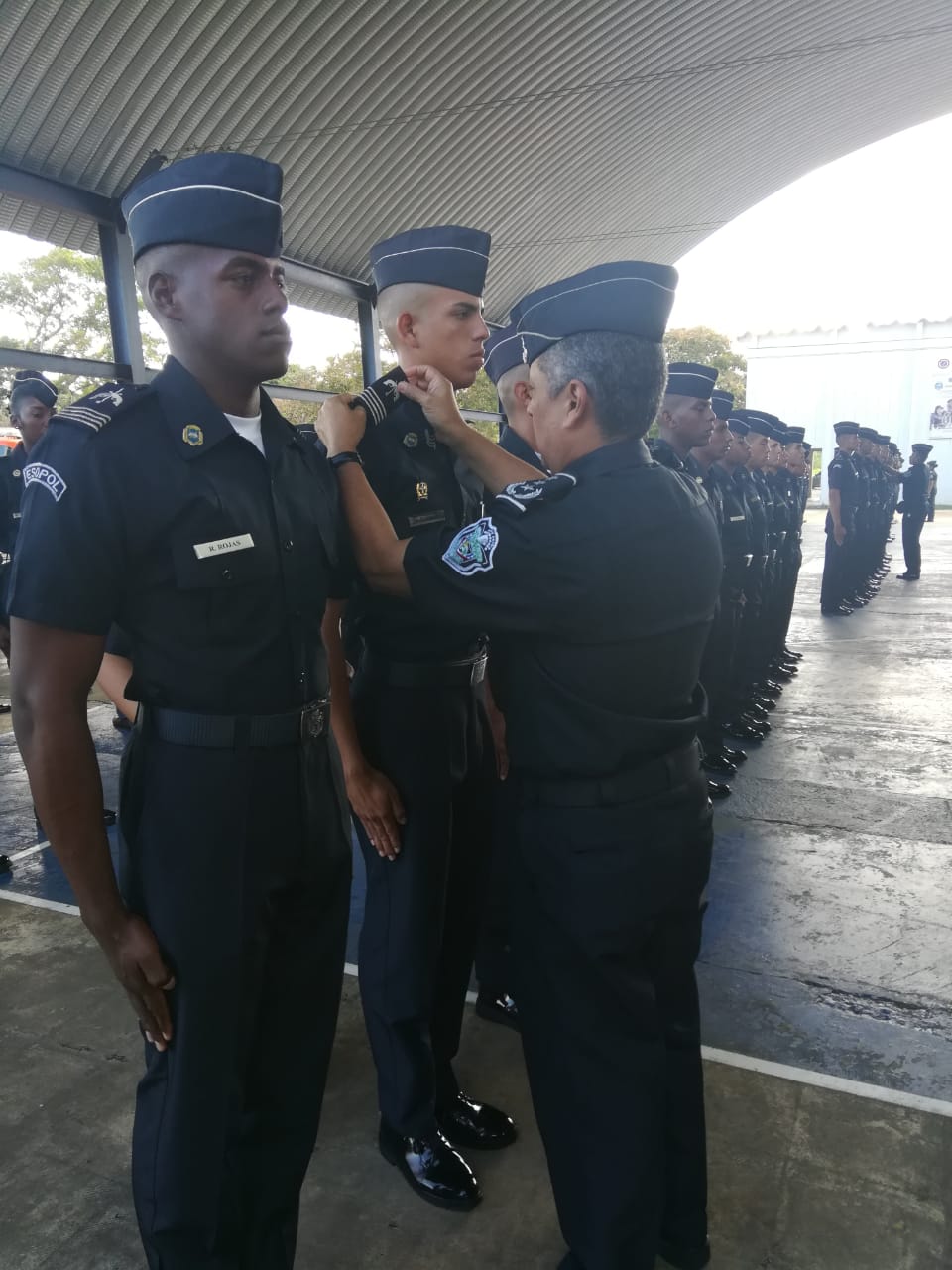 El Director Nacional de Docencia, Manuel De León junto al director de la Escuela de Oficiales de Policías Julio Wong presidieron la ceremonia de ascenso e imposición de jerarquía a estudiantes que han cumplido con el proceso académico. “Esta imposición significa el principio de una carrera policial y profesional que implica sacrificios pero también mucha satisfacción a la que están llamados a servir a la Patria los futuros oficiales de nuestro país” destacó el Director Nacional de Docencia, Manuel De León. El jefe de la Escuela de Oficiales de Policías subcomisionado Julio Wong, indicó que quienes recibieron las caponas fueron estudiantes de las promociones 19, 20 y 21 que han pasado de un nivel a otro cumpliendo todos los requisitos académicos que exige la Escuela. Fue mucha la emoción para los cadetes recibir de mano de los oficiales las caponas que con mucho honor y sacrificio han obtenido.