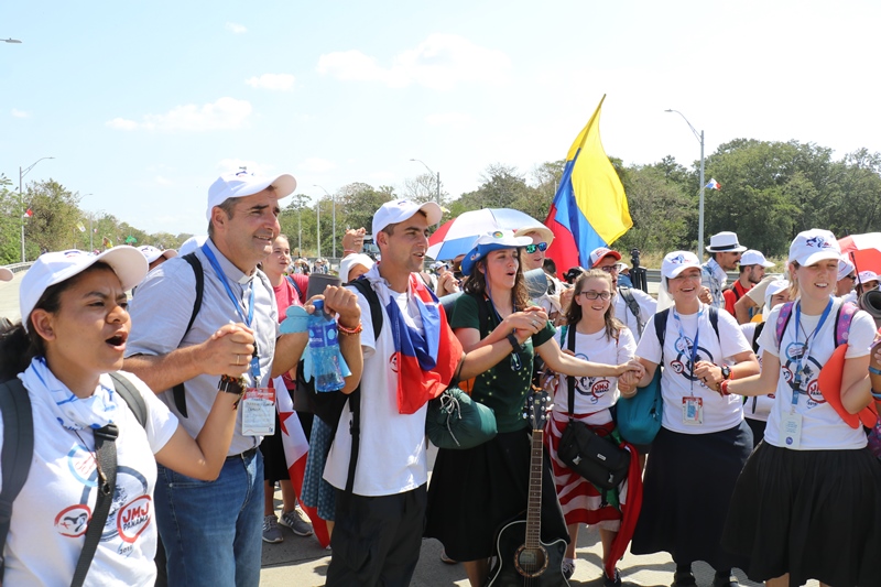 Su Santidad el papa Francisco invitó a los miles de peregrinos reunidos esta noche del sábado en la vigilia de la Jornada Mundial de la Juventud (JMJ) a no tener miedo de abrirle el corazón a Jesús y a permitir que renueve el fuego de su amor, que los impulse a abrazar la vida con toda su fragilidad y pequeñez, pero también con toda su grandeza y hermosura. Que los ayude a descubrir la belleza de estar vivos. “Dentro de un momento nos encontraremos con Jesús vivo en la eucaristía. Seguro que tendrán muchas cosas que decirle, contarle sobre distintas situaciones de sus vidas, de sus familias y de sus países. Estando frente a Él, cara a cara, no tengan miedo de decirle que ustedes también quieren tomar parte en su historia de amor en el mundo, ¡que están para más!”. Miles de peregrinos provenientes de al menos 150 países del mundo se encuentran reunidos en el Campo Juan Pablo II de Metro Park para participar en la vigilia de JMJ, dirigida por su Santidad el Papa Francisco, en la que participan el presidente de la República, Juan Carlos Varela; la primera dama Lorena Castillo de Varela y la vicepresidenta y canciller Isabel De Saint Malo de Alvarado. Una vez más, el vicario de Cristo demostró su conexión con los jóvenes al hablarles en su lenguaje, al hablarles de una historia de amor que Jesús regala, “una historia de vida que quiere mezclarse con la nuestra y echar raíces en la tierra de cada uno. Esa vida no es una salvación colgada “en la nube” esperando ser descargada, ni una “aplicación” nueva a descubrir o un ejercicio mental fruto de técnicas de autosuperación. Tampoco un “tutorial” con el que aprender la última novedad”. El santo Padre aseguró a los peregrinos que la salvación que el Señor regala es una invitación a ser parte de una historia de amor que se entreteje con nuestras historias; que vive y quiere nacer entre nosotros para que demos fruto allí donde estemos, como estemos y con quien estemos. Allí viene el Señor a plantar y a plantarse; es el primero en decir “sí” a nuestra vida, a nuestra historia, y quiere que también digamos “sí” junto a Él. Asimismo, los instó que en ese cara a cara con Jesús “le pidan por mí para que yo tampoco tenga miedo de abrazar la vida, cuide las raíces y diga como María: ¡Hágase según tu palabra!” Durante su mensaje los miles de alegres peregrinos interrumpieron una y otra vez al Santo Padre para gritar “esta es la juventud del Papa”, “Viva el papa”, “Viva Cristo” y le dedicaban aplausos y el ondear de las diversas banderas presentes en el Campo Juan Pablo II. Los peregrinos se mantendrán en vigilia durante toda la noche y mañana a, las 8:00 a.m., participarán en la misa de cierre de la JMJ, en la que se prevé que los presidentes de Costa Rica, Colombia, Portugal, Guatemala, El Salvador y Honduras acompañen al Gobernante panameño. |