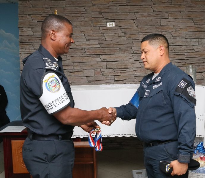 “Cada logro de un miembro de la Policía Nacional, es un orgullo institucional”, dijo el subdirector General, Jacinto Gómez Cisneros, durante el reconocimiento a la labor destacada a tres unidades del Grupo de Apoyo al Servicio (GAS). Se trata de los tenientes Edwin Reyes, Andrés Urriola y el subteniente Franklin Delgado, quienes recibieron la medalla al Mérito y medalla al Valor, respectivamente. Por su parte, el jefe del Grupo de Apoyo al Servicio (GAS), comisionado Rene Herrera, destacó que las acciones enaltecen a las personas, como a estas unidades, que han demostrado en su labor sus deseos de superación, sentido de pertenencia institucional, abnegación, compañerismo y espíritu de cuerpo, siendo ejemplos a seguir para sus compañeros. Estas condecoraciones, se dieron en la capilla San Miguel Arcángel, ubicada en la sede de la Policía Nacional en el corregimiento de Ancón, en el marco de la misa de acción de gracias, dedicada en esta ocasión a la dirección Nacional de Operaciones (DINOP), el GAS y el Servicio de Policía de Turismo. “Cada meta o reconocimiento por una acción realizada, es un Don de Dios”, dijo el capellán de la institución, Padre Edgar Flores, durante la bendición de las medallas. La Policía Nacional, está conformada por un recurso humano, que es pilar fundamental en la misión de Proteger y Servir. |