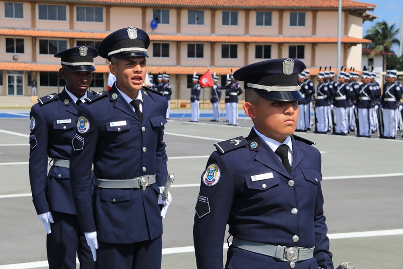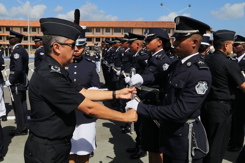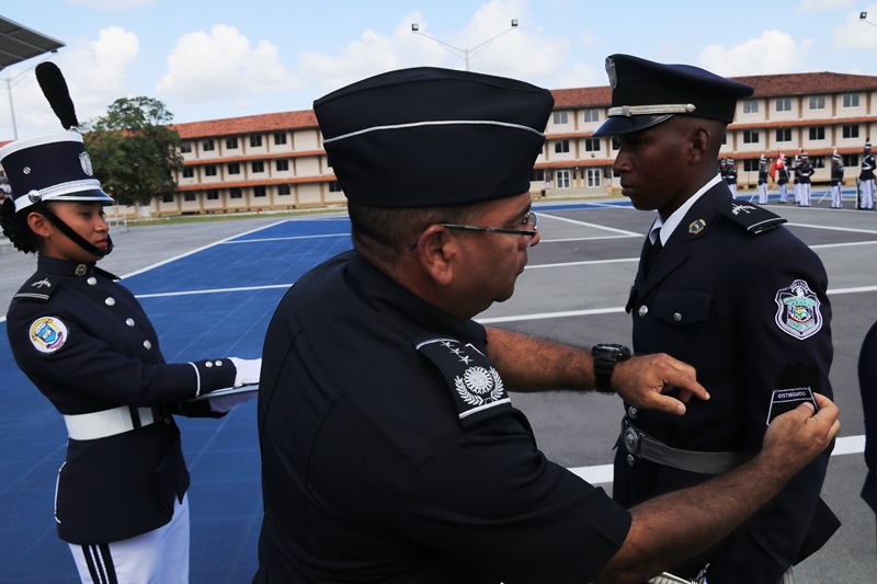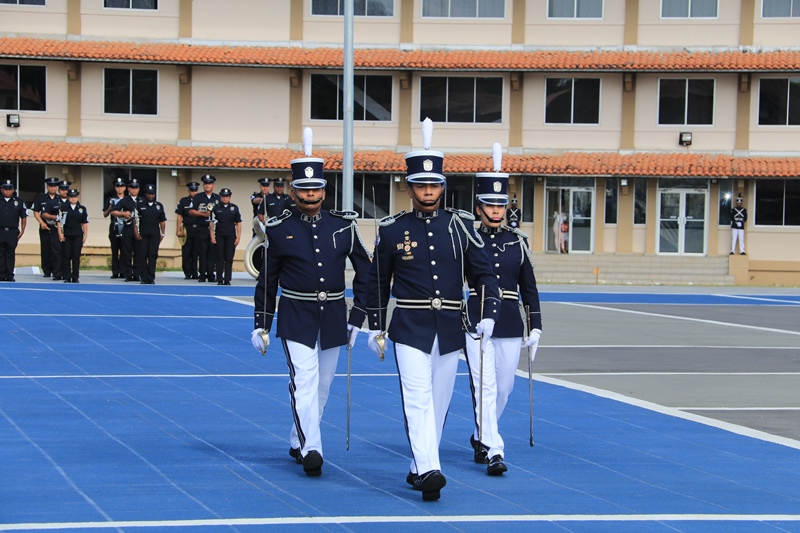 “La ceremonia de Ascenso de Año e Imposición de Caponas, es el comienzo de una profesión de compromiso, entrega y sacrificio basada en la vocación de servir”, destacó el Subdirector General de la Policía Nacional, Jacinto Gómez Cisneros durante acto que se llevó a cabo en la Escuela de Oficiales de Policía (ESOPOL), “Dr. Justo Arosemena”. El comisionado, Manuel De León, Director Nacional de Docencia, agradeció a los padres de familia el apoyo que le brindan a sus hijos y la confianza depositada en la Institución en formarlos para servirle a la patria. En el acto fueron ascendidos 87 aspirantes a cadetes pertenecientes a la XXII promoción que lleva el nombre General Tomás Herrera. La investidura del cadete de Policía representa el comienzo de una carrera policial, y por medio de la misma, el Estado deposita en cada uno de ellos la responsabilidad y el compromiso de pertenecer a las instituciones de seguridad pública. La Escuela de Policía de Panamá cuenta con estudiantes de Paraguay, Perú, República Dominicana, Costa Rica y Guatemala. El Cadete Jair González Leinch, ocupó el primer puesto de honor, seguido de Adrián Rodríguez Aizprúa, y el tercer puesto le correspondió a Reggie Aguilar.