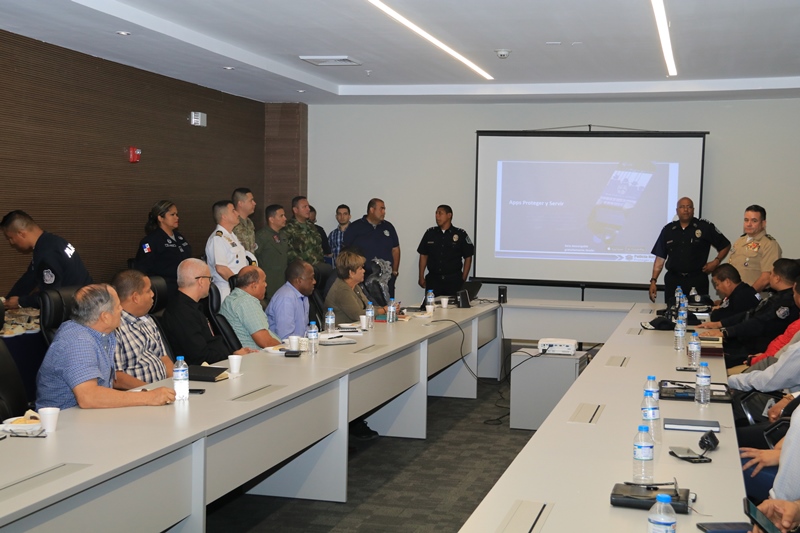Oficiales de la Policía Nacional explicaron a miembros del programa de Seguridad Ciudadana "Comercios Vigilantes" el uso y los beneficios de la nueva herramienta tecnológica con la que cuenta esta institución la APP #protegeryservir, en una reunión informativa que se llevó a cabo en el Centro Nacional de Operaciones de Seguridad y Emergencias C5–Panamá, ubicado en la sede de la Policía Nacional en Ancón. “Los comerciantes acogieron la nueva herramienta de forma positiva y se han comprometido, para que sus colaboradores también utilicen la aplicación” destacó la subcomisionado Dalys Melo jefa del Servicio de Seguridad Ciudadana. El comisionado Javier González, director de Telemática destacó que la aplicación permite a los ciudadanos generar alerta de riesgo geo-localizadas, con fotografías, videos, audios o textos desde sus teléfonos celulares en tiempo real. Igualmente que cuenta con seis iconos principales de alertas, dependiendo del riesgo en que se encuentre la persona, y un Botón de Pánico para casos extremos de emergencia, que indicará el lugar donde está ocurriendo una situación que requiera intervención policial. Los comerciantes dijeron sentirse contentos por la evolución significativa de la Policía Nacional día tras día, en materia de seguridad, buscando de esta manera mejorar la atención en la ciudadanía y brindar una respuesta eficaz. |