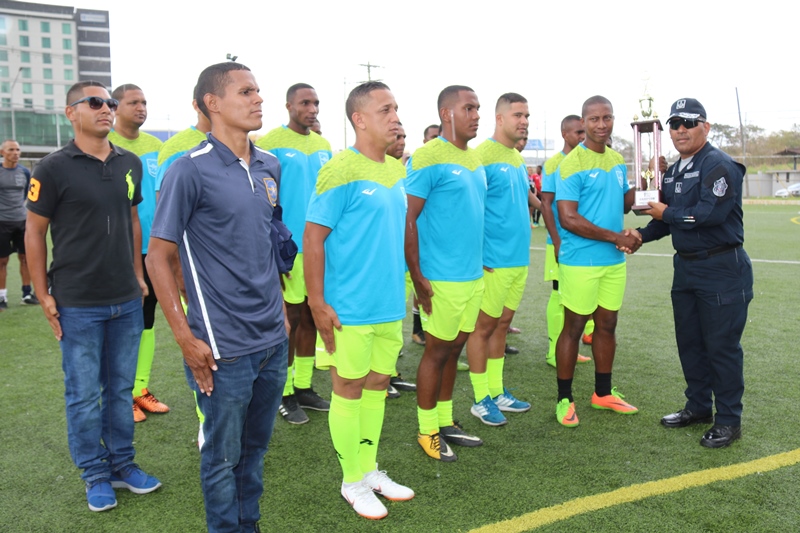 En el marco de la celebración de los 82 años de aniversario del Día del Policía se realizó el sexto campeonato Interfuerza de futbol en la cancha sintética de la Policia Nacional ubicada en el corregimiento de Ancón. En este torneo participaron unidades de los diferentes estamentos de seguridad como el Servicio Nacional de Fronteras, Servicio Nacional Aeronaval, Servicio de Protección Institucional y la Policia Nacional Un encuentro entre el equipo de la Policia Nacional y el Servicio Nacional Aeronaval dio inicio a la fase final de este campeonato dando como resultado un marcador de 5 a 2 a favor de la Policia Nacional en la categoría veteranos. En tanto en la categoría abierta el equipo del Servicio Nacional Aeronaval se alzó campeón con un resultado de 3 a 2 a favor del Servicio de Protección Institucional. “Para nosotros es de gran importancia reunir a los diferentes estamentos de seguridad que día a día luchamos para combatir la delincuencia, gracias a todos por participar ya que este evento forma un conjunto de actividades que tenemos para mejorar las relaciones de amistad y colaboración que existen entre las instituciones” agrego el Director General Encargado Jacinto Gómez Cisneros. Este campeonato es organizado cada año como parte de las actividades de aniversario de la Policia Nacional con el objetivo de promover el compañerismo, salud física y mental. |