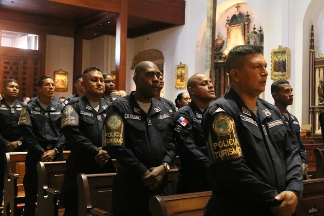 “Agradezco a Dios y a todo el personal por el apoyo brindado para hacer realidad este trabajo que durante 28 años hemos mantenido nuestra cultura de eficiencia y calidad en el servicio que ofrecemos en beneficio de nacionales y extranjeros”, expresó el jefe del Servicio de Policía de Turismo, comisionado Aldo Macre. Unidades policiales pertenecientes al Servicio de Policía de Turismo conmemoraron el 28 Aniversario con una misa de acción de gracia, ofrecida por el padre encargado de las Iglesias del Casco Antiguo, Javier Maña. En medio de la solemne misa el padre Javier Maña de la iglesia Nuestra Señora de la Merced, pidió a Dios por todos los uniformados para que los cuide, los proteja, y les permita seguir realizando su labor de velar por la sana convivencia y la seguridad en el país. El acto religioso estuvo encabezado por el jefe del Servicio de Policía de Turismo, quien estuvo acompañado de demás uniformados, colaboradores de la Institución, y la comunidad en general. Como parte de las actividades conmemorativas también fue entregada una ofrenda en el Altar, y canastilla en el Hospital del Niño. La labor del Servicio de Policía de Turismo es muy importante, su presencia da confianza a propios y extraños, actualmente este servicio cuenta con policías que tiene la capacidad de guía turístico, además hay expertos en idiomas. |