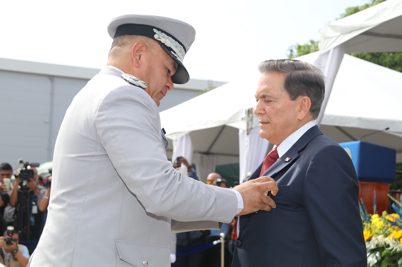 El presidente de la República, Laurentino Cortizo Cohen, durante la ceremonia de cambio de mando de los estamentos de seguridad del Estado, expresó que ya se había comprometido a ser el primer obrero del país, y que adicionalmente hoy “soy el primer policía de Panamá, y me siento honrado de esa distinción”. Cortizo Cohen transfirió este jueves el mando del director de la Policía Nacional, Jorge Miranda Molina; al director del Servicio Nacional de Fronteras (SENAFRONT), Oriel Ortega, y al director del Servicio Nacional Aeronaval, Juan Manuel Pino, en una ceremonia en la cual participaron el vicepresidente y ministro de la Presidencia, José Gabriel Carrizo Jaén; y el ministro de Seguridad Pública, Rolando Mirones. El mandatario dijo que se trata de una ceremonia especial, única e histórica, porque por primera vez los tres estamentos de seguridad realizan de manera simultánea el cambio de mando “y eso es una señal clara y alta de que vamos a trabajar en equipo”. Cortizo Cohen dijo que la Policía Nacional debe garantizar la paz y seguridad ciudadana; con trabajo integral, en equipo, donde se destaque la prevención y coordinación con los ministerios de Educación, Desarrollo Social, Salud, la cultura y deporte, además de organizaciones comunitarias y gobiernos locales. El Mandatario instruyó a los directores entrantes a trabajar coordinadamente y con disciplina, porque la disciplina forja carácter, y vence las adversidades que enfrentan todos los días, y ayuda a construir el espíritu de cuerpo que necesitan y el espíritu de cuerpo logra metas, “y estoy seguro de que nuestros estamentos de seguridad, metas y objetivos serán cumplidos”. “El crimen los vamos a anticipar con información e inteligencia y tecnología. Esta administración, y escúchenlo bien, respetará el escalafón y la antigüedad, y vamos a asegurar que ese respeto perdure en el tiempo. Vamos a respetar el derecho a su descanso”, precisó. Destacó a las mujeres y hombres de la Fuerza Pública y a directores entrantes que nada sustituye el ejemplo; y a los oficiales, que respeten a sus subalternos, y a subalternos que respeten a sus superiores, siempre cumpliendo con la Constitución y las leyes de la República. “Mujeres y hombres de la Fuerza Pública, ahora a salir de las oficinas, a trabajar en el campo al lado de la gente. Para cada uno de ustedes, mi gratitud. Nosotros, el país, estamos en buenas manos con hombres y mujeres como ustedes”, puntualizó el mandatario. Durante la ceremonia, el presidente Cortizo Cohen entregó la “Medalla Mérito, José Luis Sosa”, al director saliente de la Policía Nacional, Alonso Vega Pino, por su destacada labor al frente de esta institución policial. Entregó la “Medalla Victoriano Lorenzo en grado de Gran Cruz” al exdirector del Servicio Nacional Aeronaval (Senan), Gilberto Méndez Jaramillo y la “Medalla Distinguida” al director saliente del Servicio Nacional de Fronteras (Senafront), Eric Estrada. El director saliente de la Policía Nacional, Alonso Vega Pino, le entregó el banderín de mando al presidente Cortizo Cohen, quien a su vez se lo pasó al nuevo director de esta institución, Jorge Miranda Molina. Lo mismo hizo el director saliente del Senan, Gilberto Méndez Jaramillo, con el director entrante de esta entidad, Juan M. Pino F. y el director saliente del Senafront, Eric Estrada, con el nuevo director de esta institución, Oriel Ortega Benítez. Por su parte, el ministro Mirones impuso los nuevos rangos al nuevo subdirector de la Policía Nacional, Alexis Muñoz; del Senan, Ramón Nonato López, y al nuevo subdirector del Senafront, Roger Mojica.