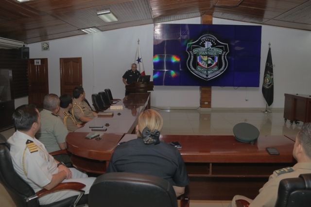 El director general de la Policía Nacional, Jorge Miranda Molina recibió en la sede de esta institución policiala los agregados policiales de Perú, Colombia, Ecuador, Chile y México con el objetivo de intercambiar experiencias e incrementar la cooperación y coordinación en pro de la seguridad. “A través del Departamento de Sedes Diplomáticas mantenemos colaboración con los demás cuerpos uniformados, con el compromiso de luchar contra el crimen organizado transnacional y las diferentes amenazas que afectan a nuestros países” manifestó el jefe de la Policía Nacional. La reunión se llevó a cabo en el salón de conferencia en la sede de la Policía Nacional en Ancón, allí el Director General estuvo acompañado por el subdirector general, Alexis Muñoz Cerpa; el director nacional de Operaciones, comisionado Domingo Espitia; secretaria general Emily Quintero y la directora nacional de Docencia comisionada Erly Miranda. Por su parte, el coronel Leonardo Valderrama, presidente de la Asociación de Agregados en nuestro país, destacó la importancia de esta reunión para trabajar con un solo fin, la seguridad de nuestros conciudadanos. Al final el encuentro, agregados policiales de Ecuador, Colombia y Perú hicieron entregaron de obsequios al nuestro Director General.