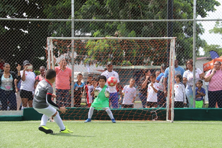 El director general de la Policía Nacional, Jorge Miranda Molina inauguró en horas de la mañana de este sábado 27 de julio el programa denominado “Deporte en Su Comunidad”, con la participación de equipos, integrados por niños de 6 a los 12 años. “Con nuestros programas deportivos y preventivos llegamos a los barrios para buscar a los niños con talento en el fútbol y otras disciplinas, alejándolos de los peligros de la calle, fortaleciendo los valores para hacer de ellos mejores ciudadanos”, resaltó el director general. El evento contó con la presencia de representantes de la Fundación Amigos del Real Madrid y Cachorros de San Pedro, acompañados por niños quienes participarán en las categorías sub-6 y sub-12. Por su parte, el comisionado y jefe del departamento de Deportes, Ibero Valdés, dijo que se trata de un “tour deportivo”, ya que esta actividad será llevada a varias comunidades, como San Joaquín, Barraza, El Chorrillo, Juan Díaz, Tocumen, entre otras. La actividad también incluyó un intercambio deportivo entre los padres y entrenadores. |