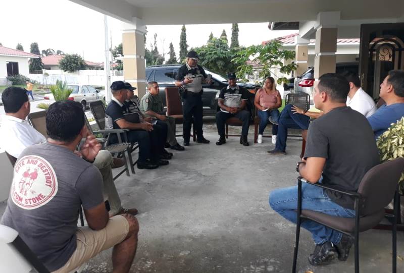 Una reunión de seguimiento, en el residencial Villa Patricia No 2, en el corregimiento de San Pablo Viejo, distrito de David, llevaron a cabo integrantes del programa Vecinos Vigilantes del lugar. La misma fue presidida por el subcomisionado Pedro Romero, ejecutivo de la 4ta. Zona Policial. Participaron además unidades del servicio de Seguridad Ciudadana y de la sección de Telemática. Este sector cuenta con 21 modernas cámaras de video vigilancia, instaladas estratégicamente. El ejecutivo habló sobre medidas preventivas de los delitos y sobre la filosofía de la Policía Comunitaria. Los residentes indicaron que la respuesta de la Policía Nacional, ante las llamadas telefónicas efectuadas, ha sido buena y que seguirán colaborando con estas alianzas de seguridad comunitaria. |