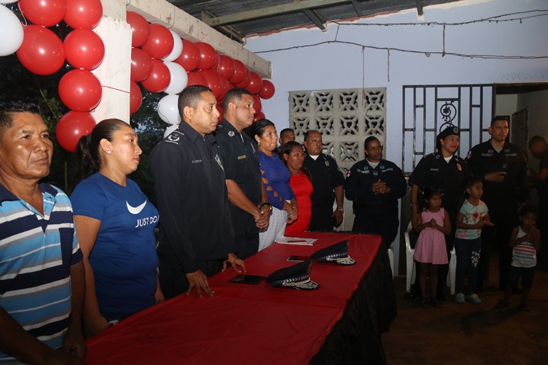 Con la asistencia y participación de moradores de más de 50 familias de las comunidades de La Bendición y La Primavera ubicadas dentro del Corregimiento Ernesto Córdoba Campos de Alcalde Díaz, se inauguró en horas de la noche del miércoles el programa Vecinos Vigilantes en este sector. En la actividad estuvo el jefe de la Zona Policial Norte Dorian Espitía, además del comisionado Clemente Buitrago, Ejecutivo de la Zona, y la mayor Margarita González así como la señora Yissel Pérez, coordinadora comunitaria del programa Vecinos Vigilantes, entre otros líderes y moradores de las citadas comunidades. Al hacer uso de la palabra el comisionado Dorian Espitía detalló el beneficio que se ha logrado a través de la implementación de programas como Vecinos Vigilantes además de los programas de desarrollo humano GREAT y DARE que han sido muy efectivos en la orientación y guía para niños y estudiantes en las escuelas, a fin de alejarlos de los peligros del acoso escolar (bullying), el pandillerismo y el consumo de alcohol y drogas. El comisionado Clemente Buitrago ejecutivo de la Zona Policial Norte expresó el compromiso de la institución de trabajar mancomunadamente con las comunidades dentro del marco de la implementación de la Policía Comunitaria. La señora Yissel Pérez, coordinadora del programa Vecinos Vigilantes, agradeció el esfuerzo que realiza la Policía Nacional por llevarles estos programas a fin de lograr un acercamiento con los moradores de esta región. |
