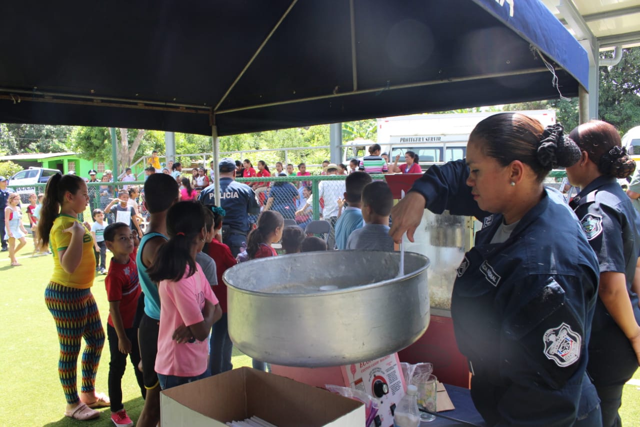 Unidades de la Zona Policial de Herrera compartieron con estudiantes y padres de familia de la escuela primaria de la comunidad de Sabana Grande del distrito de Pesé, quienes pasaron momentos agradables, junto a los miembros del orden público. En la actividad estuvo el subcomisionado, Franklin Araúz, jefe de la zona policial acompañado de oficiales, quienes interactuaron con los alumnos de esas escuela con la finalidad de fortalecer los lazos de comunicación con los pequeños y adultos. Los uniformados repartieron golosinas como algodones de azúcar y palomitas de maíz y compartieron con los más pequeños que se divirtieron con pintas carita, presentación Canina y juegos de esparcimiento, que alegraron el ambiente de todos. |