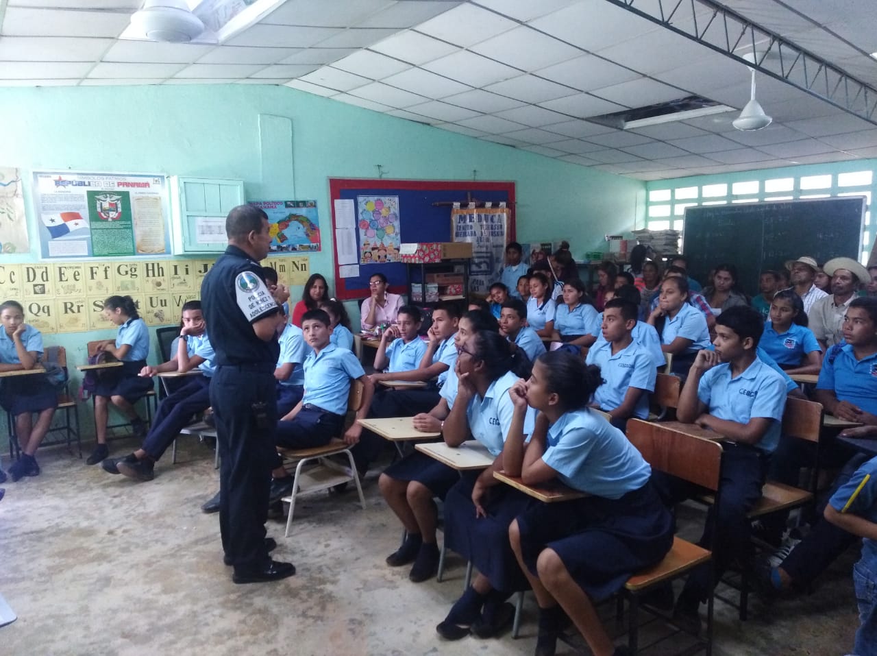 Unidades del Servicio de Niñez y Adolescencia de la Zona Policial de Herrera capacitaron a padres de familia y estudiantes del Centro de Educación Básica General Quebrada El Rosario del distrito de Las Minas, sobre Prevención de Drogas y la Ley 40, donde se beneficiaron más de 80 personas de esa comunidad. Las unidades policiales también orientaron a los participantes sobre los temas relacionado con la responsabilidad paterna y de los deberes y derechos de los menores de edad y otros temas de seguridad. Hay que indicar que la Policía Nacional en Herrera está llevando estos programas de desarrollos humanos con charlas, a planteles educativos de difícil acceso y realizamos acercamiento a estudiantes de diferentes edades.